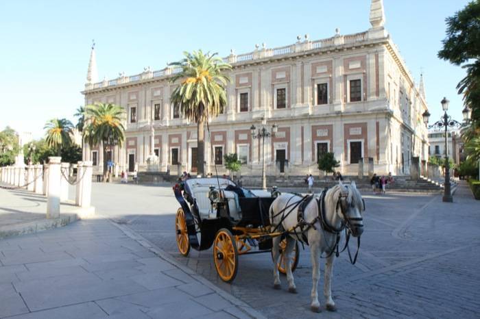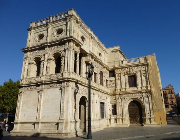 Archivo general de Indias : Situé entre le Real Alcázar et la Cathédrale, il fut d'abord Bourse du commerce sévillan avant de devenir le siège de peinture de Murillo et abrite plus de 40 000 archives de la conquête du Nouveau Monde. Avenida de la Constitución, 3