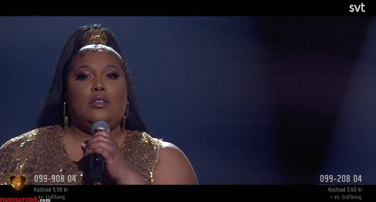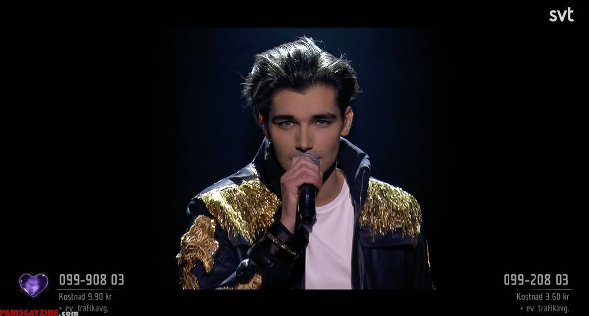 Submergé par l’émotion après sa sélection il y a trois semaines, Anton Ewald livre sans fausse note une performance très dansée sous des lasers colorés. Le beau gosse attire les regards des gays et porte superbement sa veste en cuir aux artifices dorés.