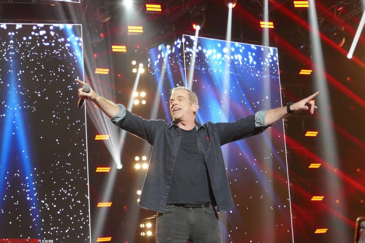 Il est venu interpréter tous ses tubes aux Hit Machine (séquence que nous ne voyons pas ce soir), c’est Pascal Obispo. Ce soir sur scène, il reprend son tube d’alors « Fan », en s’accompagnant au piano.