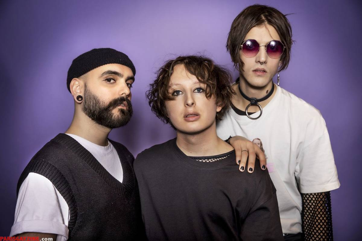 Le chanteur nous fait penser à un jeune Robert Smith de Cure en jupette écossaise / kilt, tandis qu’un des deux autres guitaristes a le look de Damiano des italiens de Måneskin, Un batteur accompagne aussi le trio Tribe Friday sur scène. Visuellement, il y a un effet journal découpé en noir et blanc et en rose. C’est plus réussi que ce que proposait le rock band féminin la semaine dernière, musicalement également.