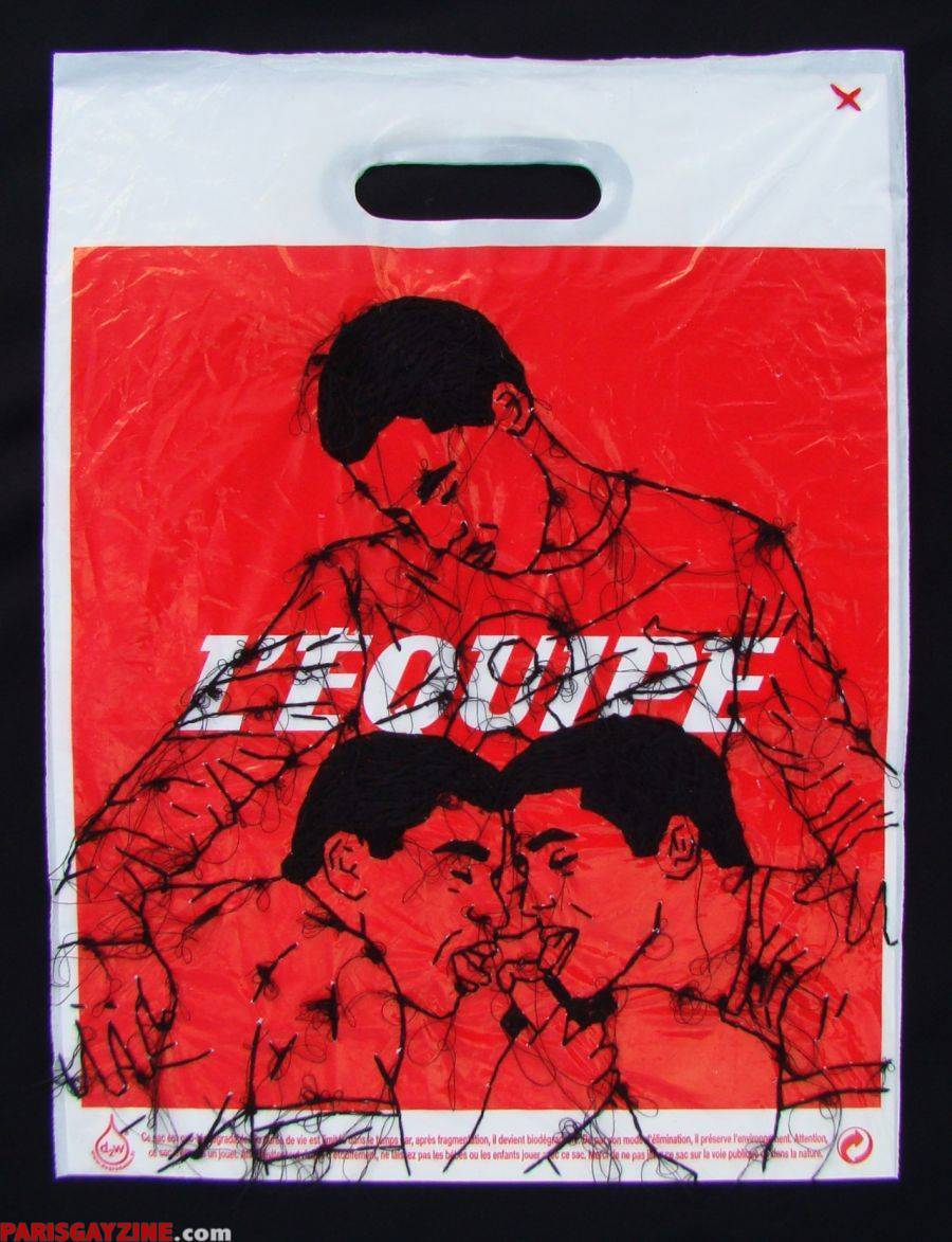Full Mano est un artiste gay français qui fait de la couture sur divers supports (vinyls, journaux, photos, sacs plastiques, capotes…). Son goût pour les bears et le fetish transparaît dans son art, original et unique, inspiré également du street art.