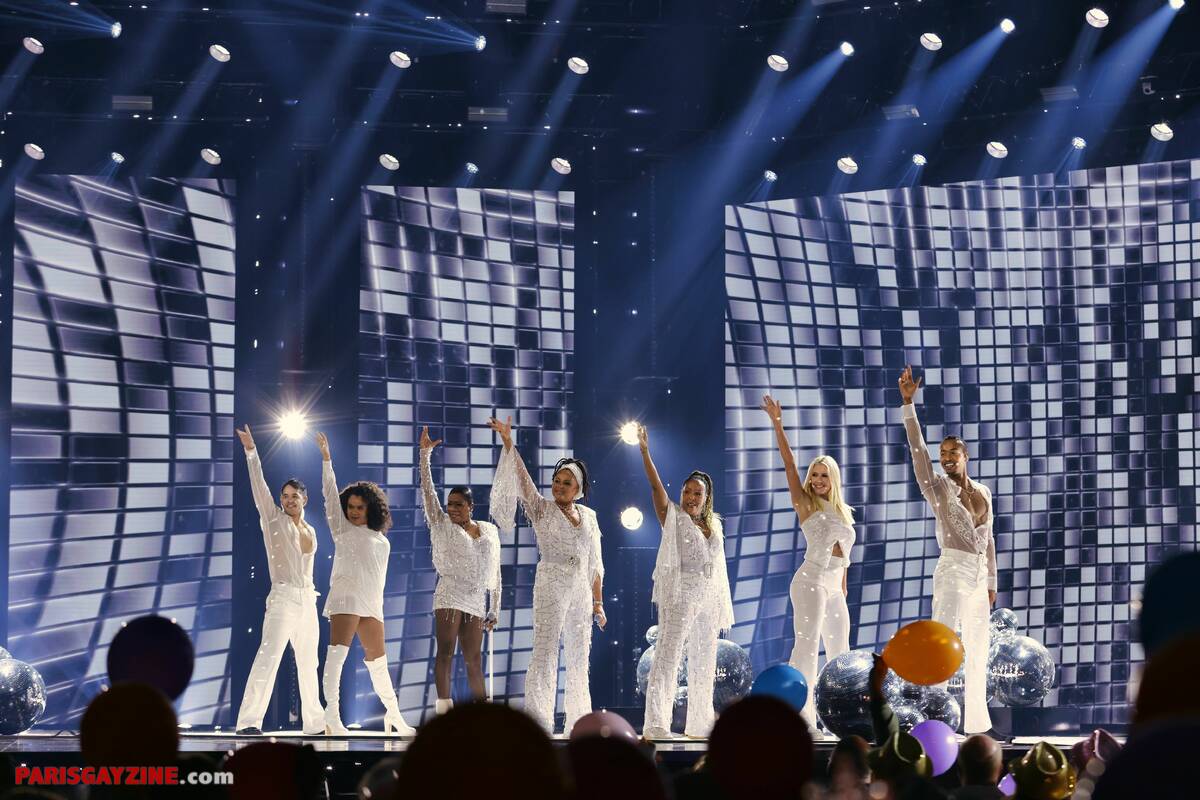 Sous un énorme logo, c’est dans une ambiance Las Vegas avec le nom du groupe en néons, que le sextet évolue sur des plateformes aux lumières éblouissantes.