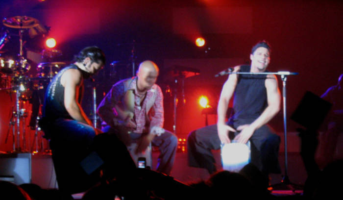 Des sirènes retentissent sur la scène, il enchaîne sur la rythmique raggaeton de Drop it on me et danse avec sa pulpeuse choriste latina sur Loaded. Il communique ses valeurs de paix avec son public et l'invite à chanter et à danser sur les titres La bomba et Por arriba, por abajo. Une compétition sur le chant et les chorégraphies entre chaque côté de la salle s'instaure.