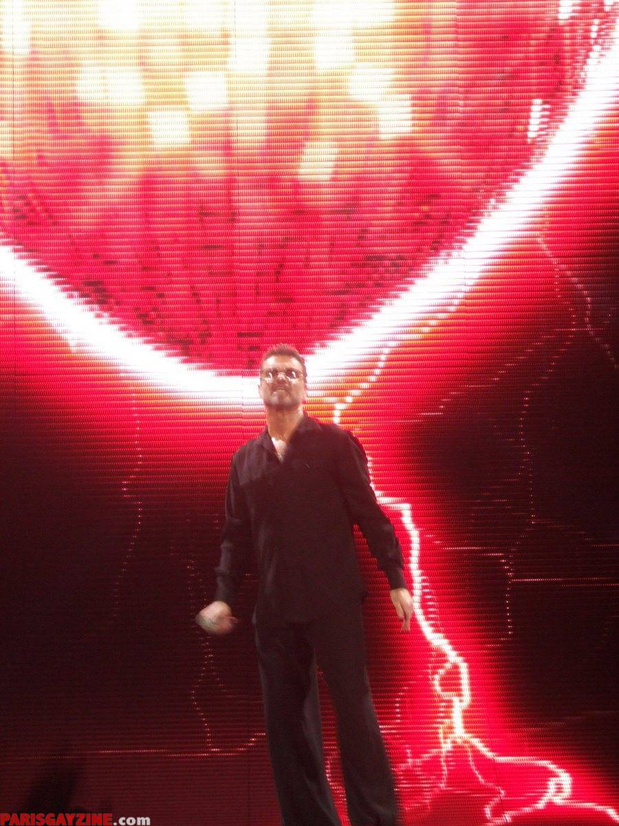 Alors que ceux sont des cercles qui clignotent sur "Amazing", premier single de son cinquième album solo "Patience" sorti en 2004. Sur cette chanson rythmée, le sex-symbol est acclamé dès qu'il apparaît à droite ou à gauche de la scène. Bercy danse et George Michael le chauffe lorsqu'il dit en français "à gauche à droite" et tend son micro pour écouter le public chanter à sa place. L'ambiance 80's du tube Wham ! (duo séparé en 1985) sur "I'm your man" est intensifiée par le visuel disco de la scène. George encourage son public à chanter en lançant en français un "Tout le monde…".