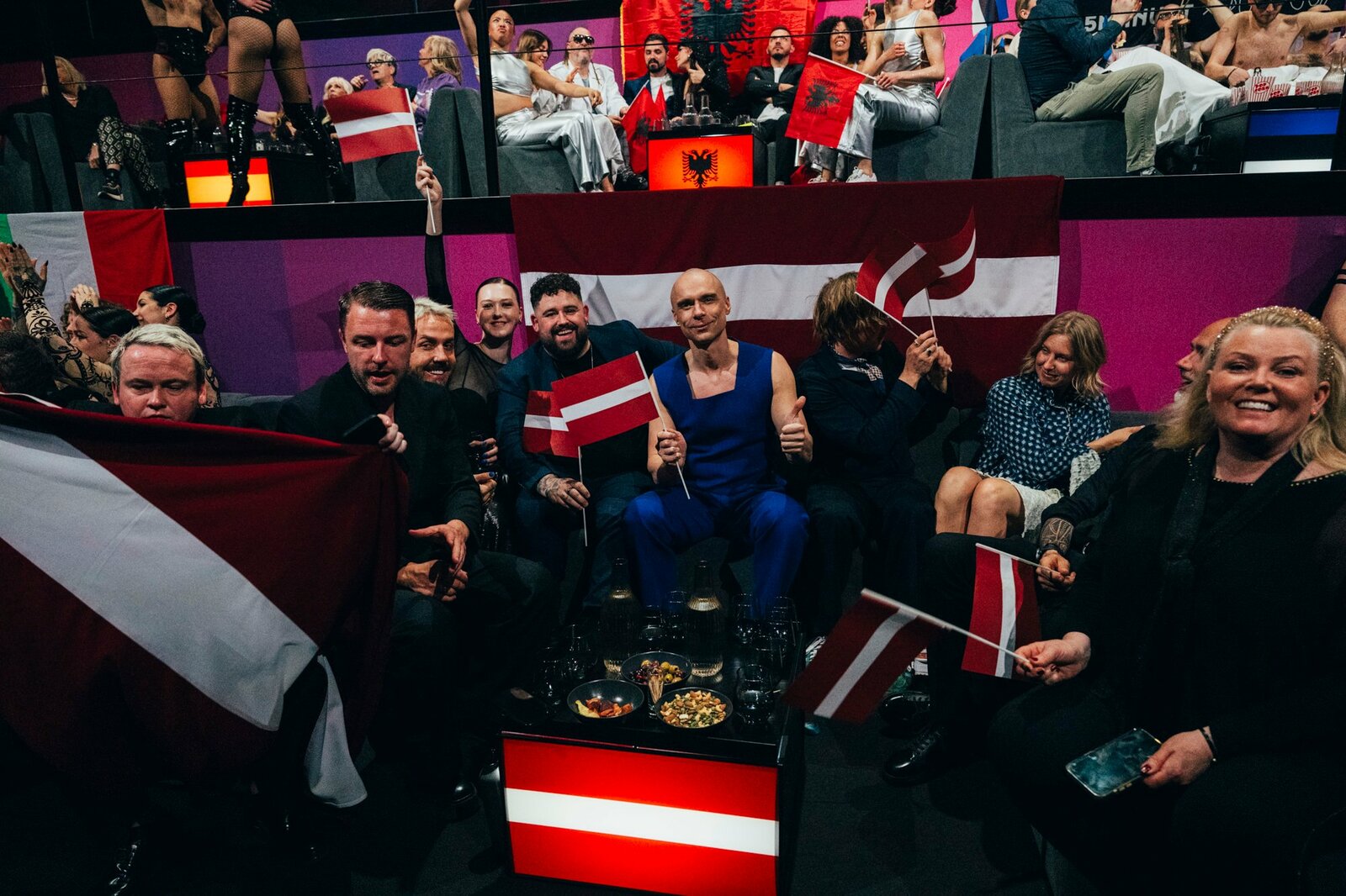 Le letton Dons prend la scène avec sa chanson "Hollow", offrant une performance au niveau supérieur mêlant pop et gospel. Sa voix soul puissante captive les amateurs de musique contemporaine. À 40 ans, il affiche une présence remarquable dans un débardeur bleu bien ajusté, reflétant son style discret mais élégant.