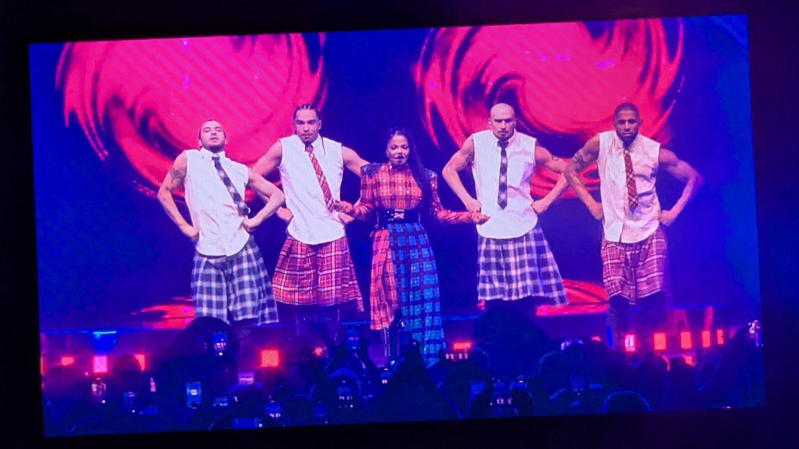 Accompagnée de ses danseurs sexys en kilts, Janet Jackson interprète ses chansons phares des années 80, notamment "What Have you done for me lately", "Nasty" ou encore "Diamonds". Le spectacle atteint son paroxysme lorsque Janet, vêtue de noir, interprète "Scream", son duo emblématique avec The King of Pop. L'apparition de Michael Jackson sur les écrans géants, en noir et blanc, déclenche une vague d'émotion et d'hystérie dans la salle. Janet disparaît des projecteurs pour un rapide passage en coulisses, filmé en direct. Elle y fait une petite retouche maquillage sous les yeux du public avant de revenir interpréter "Whoops Now" depuis les coulisses. Un tube qu'elle n'avait pas interprété en concert depuis 1998. Nous avons particulièrement aimé entendre "That's the way love goes", "If", "Throb", "Escapade", "All night" et "Feedback".