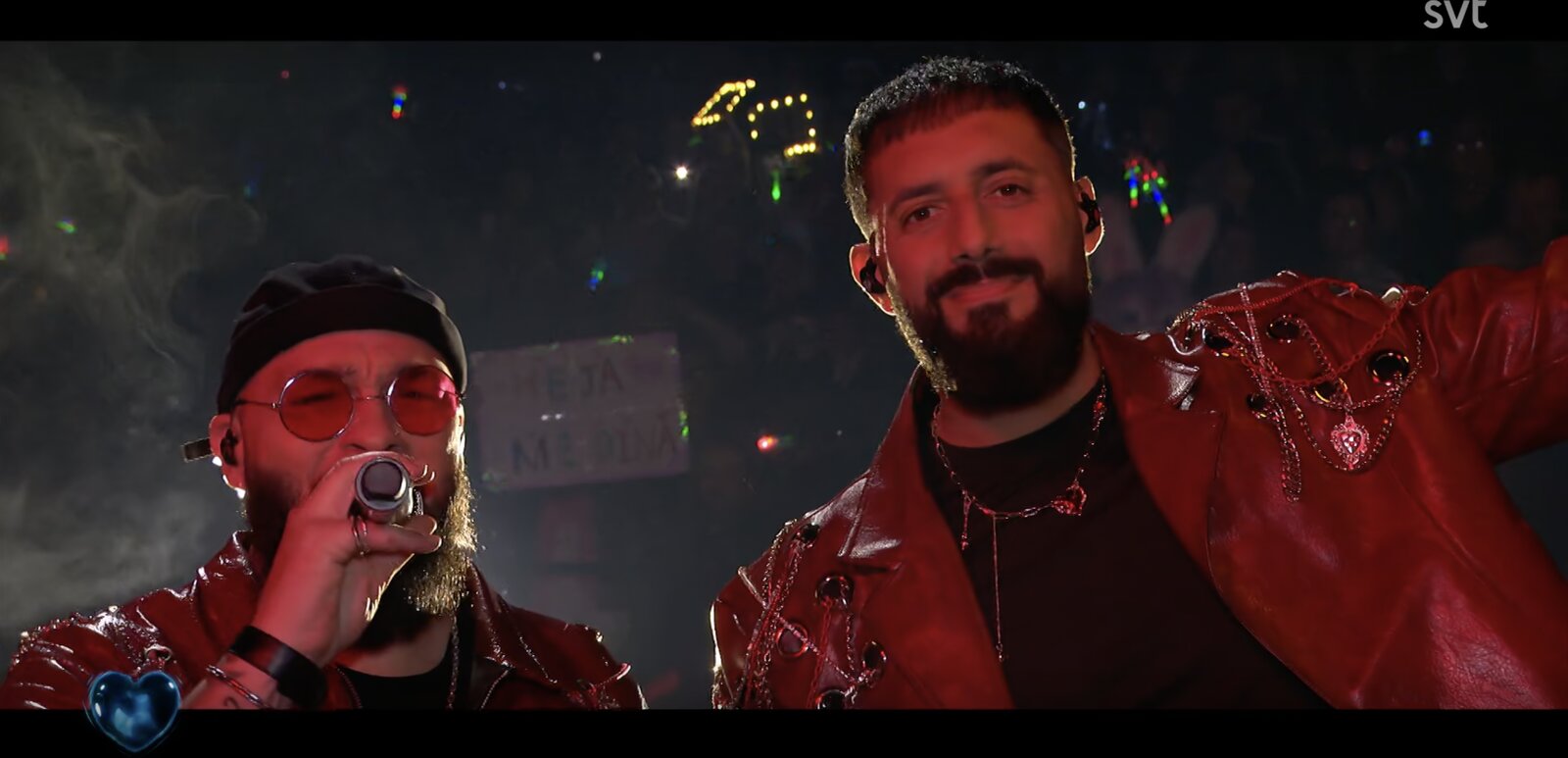 En ce soir de Saint-Valentin, Ali & Sami proposent un titre consacré à l’amour. La prestation débute dans l’allée, entourés de danseurs et danseuses vêtus de bordeaux. Le duo progresse ensuite vers la scène principale, dominée par une structure en forme de cœur rouge.