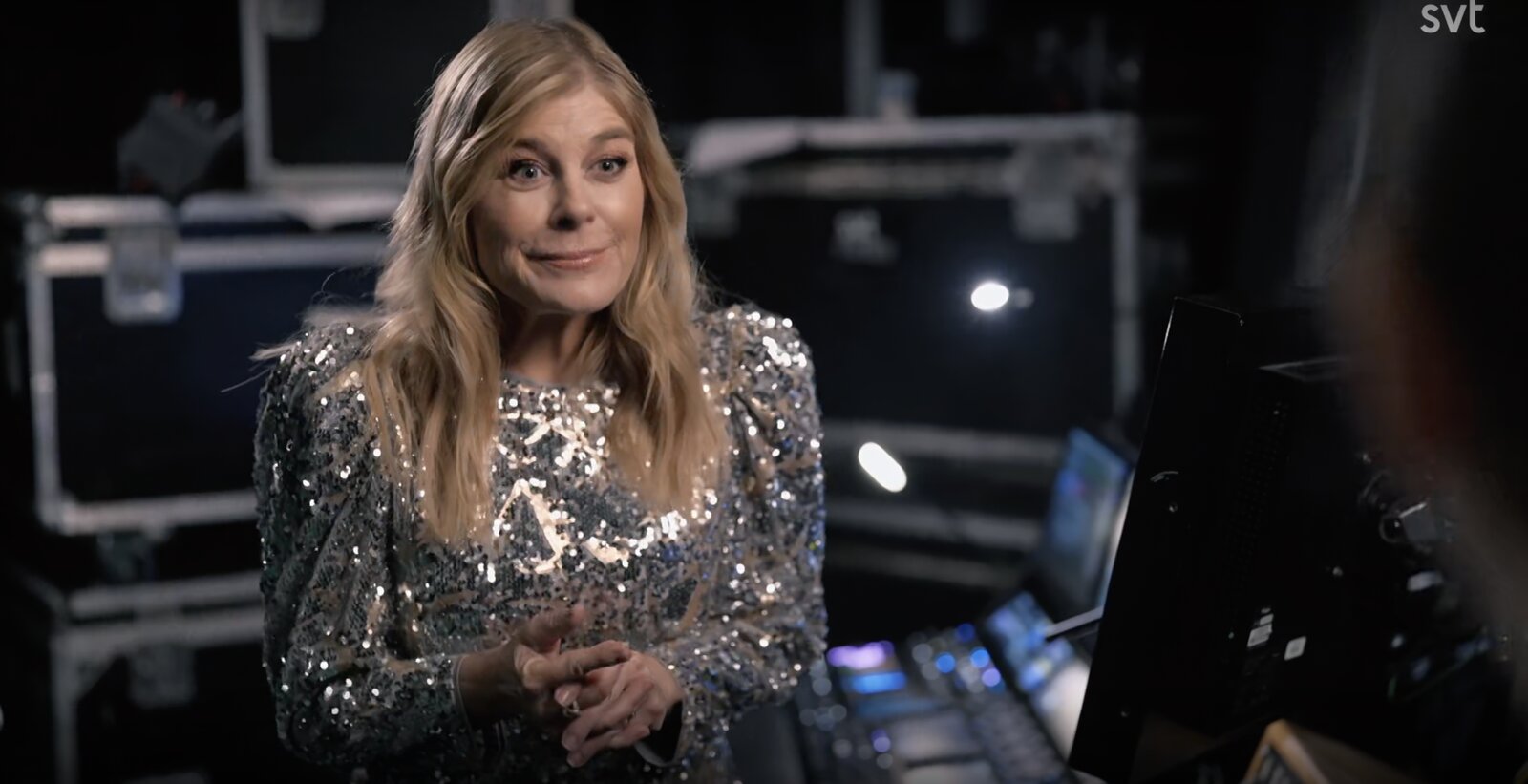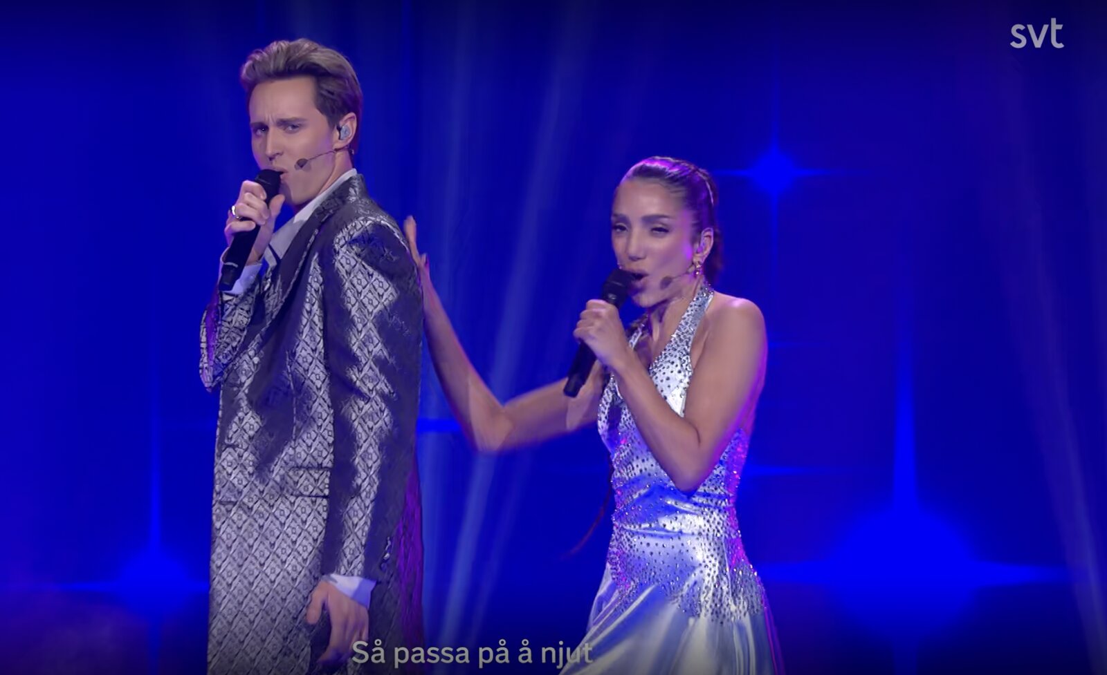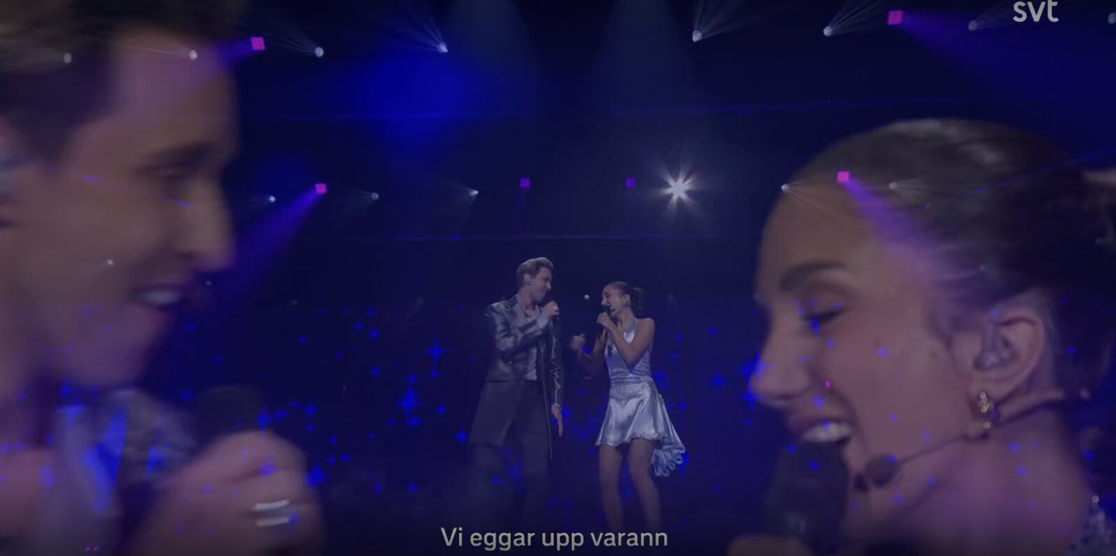 Le duo est interrompu par la chanteuse Pernilla Wahlgren, qui, en régie, donne quelques conseils à Gina. Hampus, lui, se retrouve dans le public en compagnie du chanteur Jan Johansen.