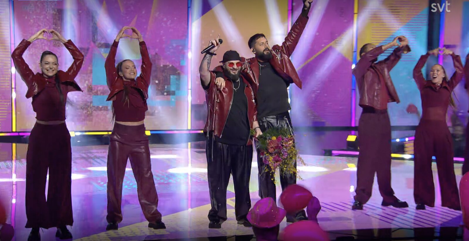 Six extraits de leur prestation sont diffusés, et tous apparaissent un court instant, avec un cœur chacun en ce jour et pour appeler les spectateurs suédois à voter pour eux.