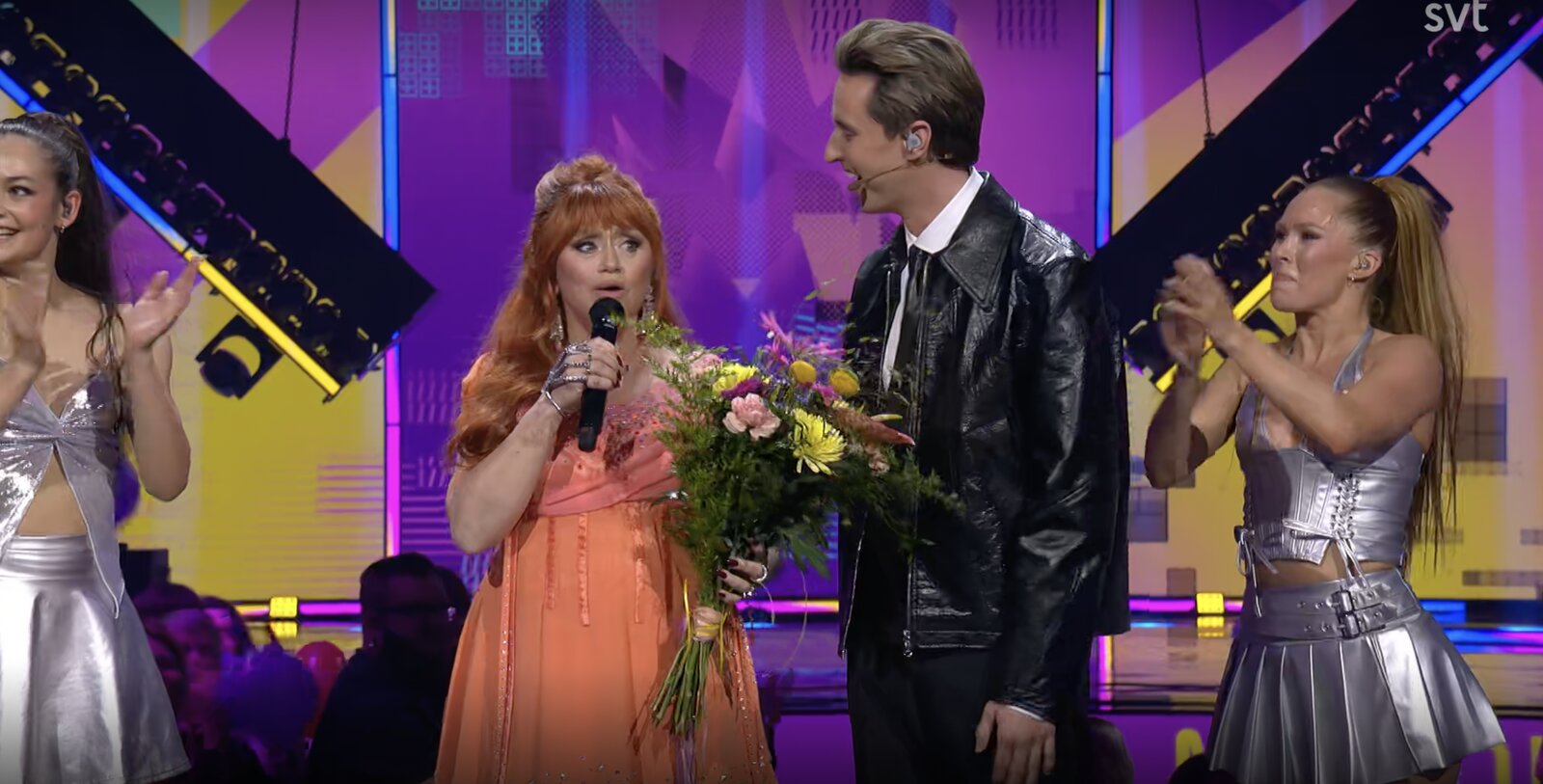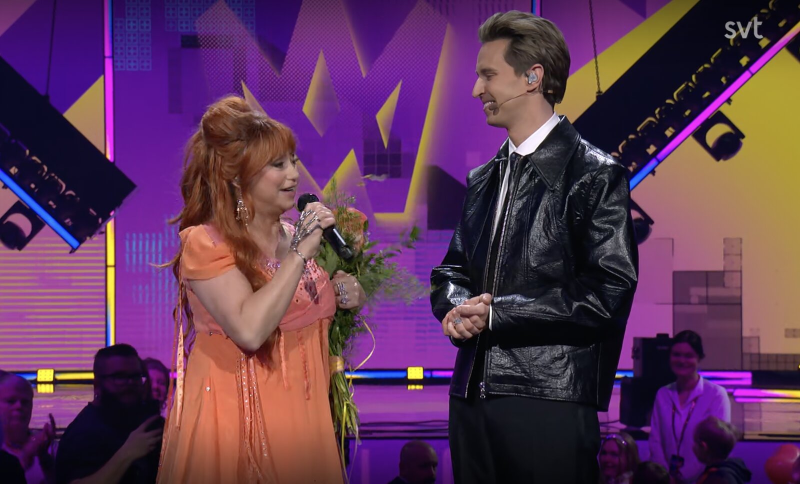 Nanne Grönvall reçoit une belle ovation en plus du bouquet de fleurs remis par Hampus. A 63 ans, la chanteuse a toujours de l’énergie à revendre et sa prestation ce soir le démontre encore.