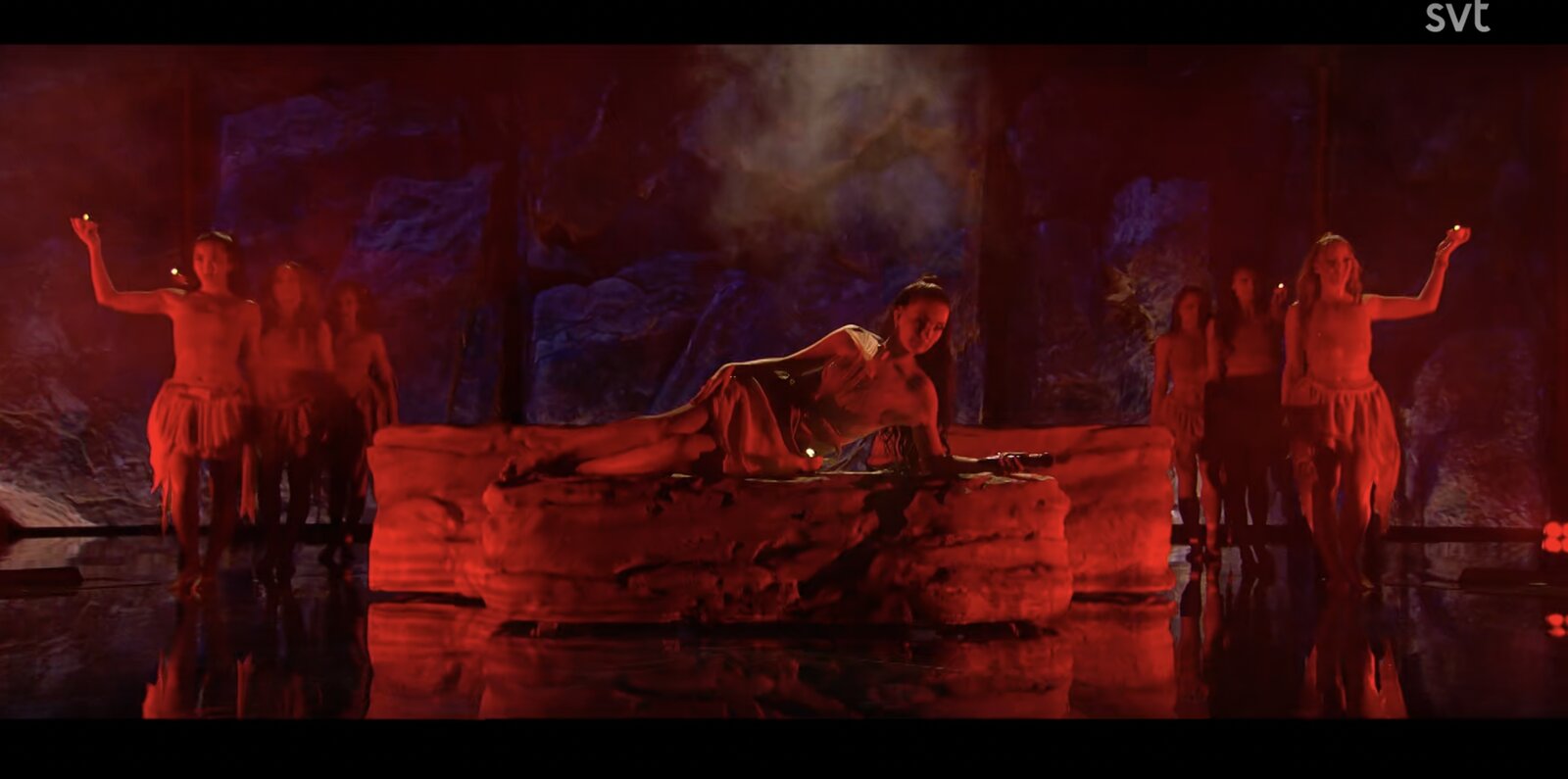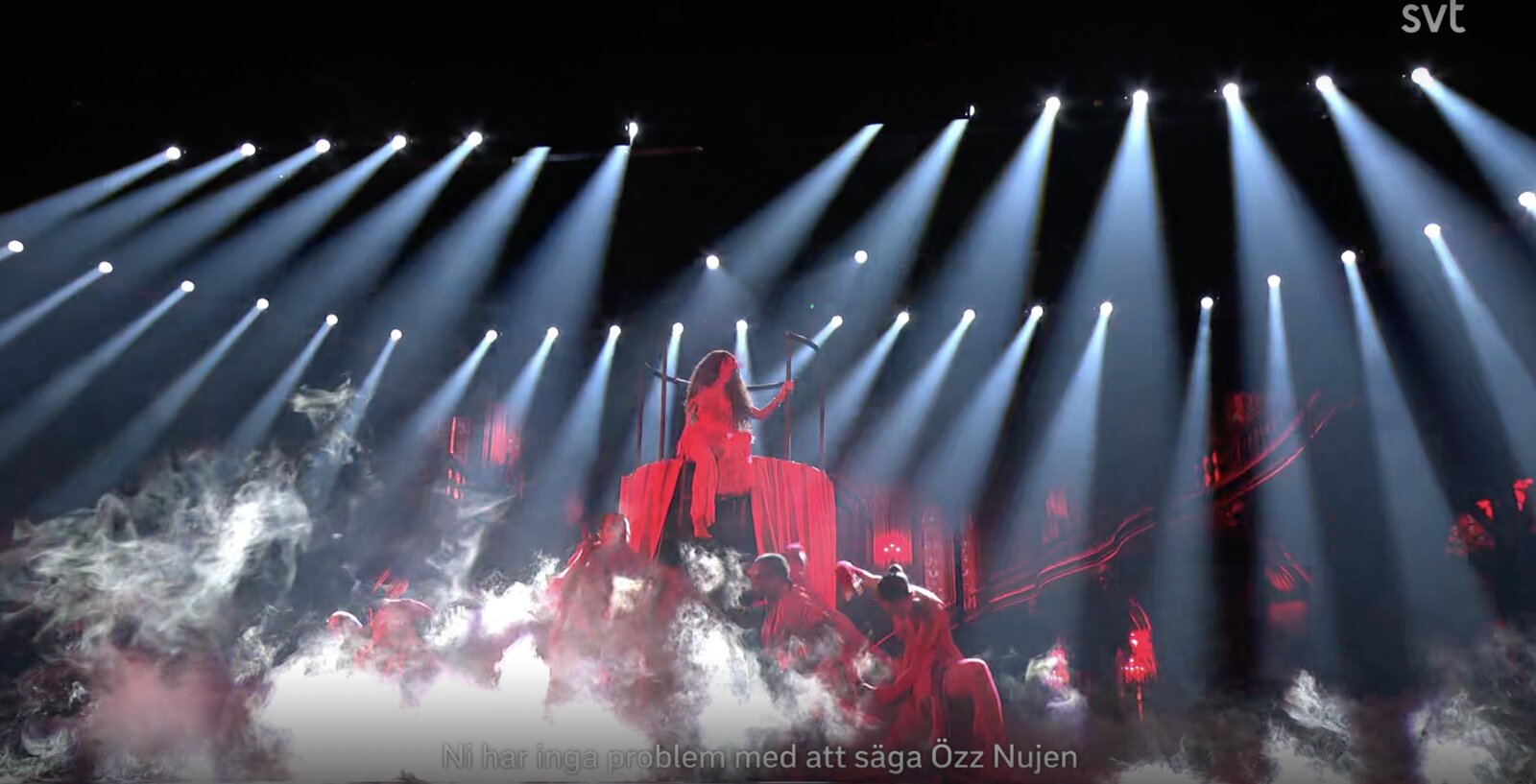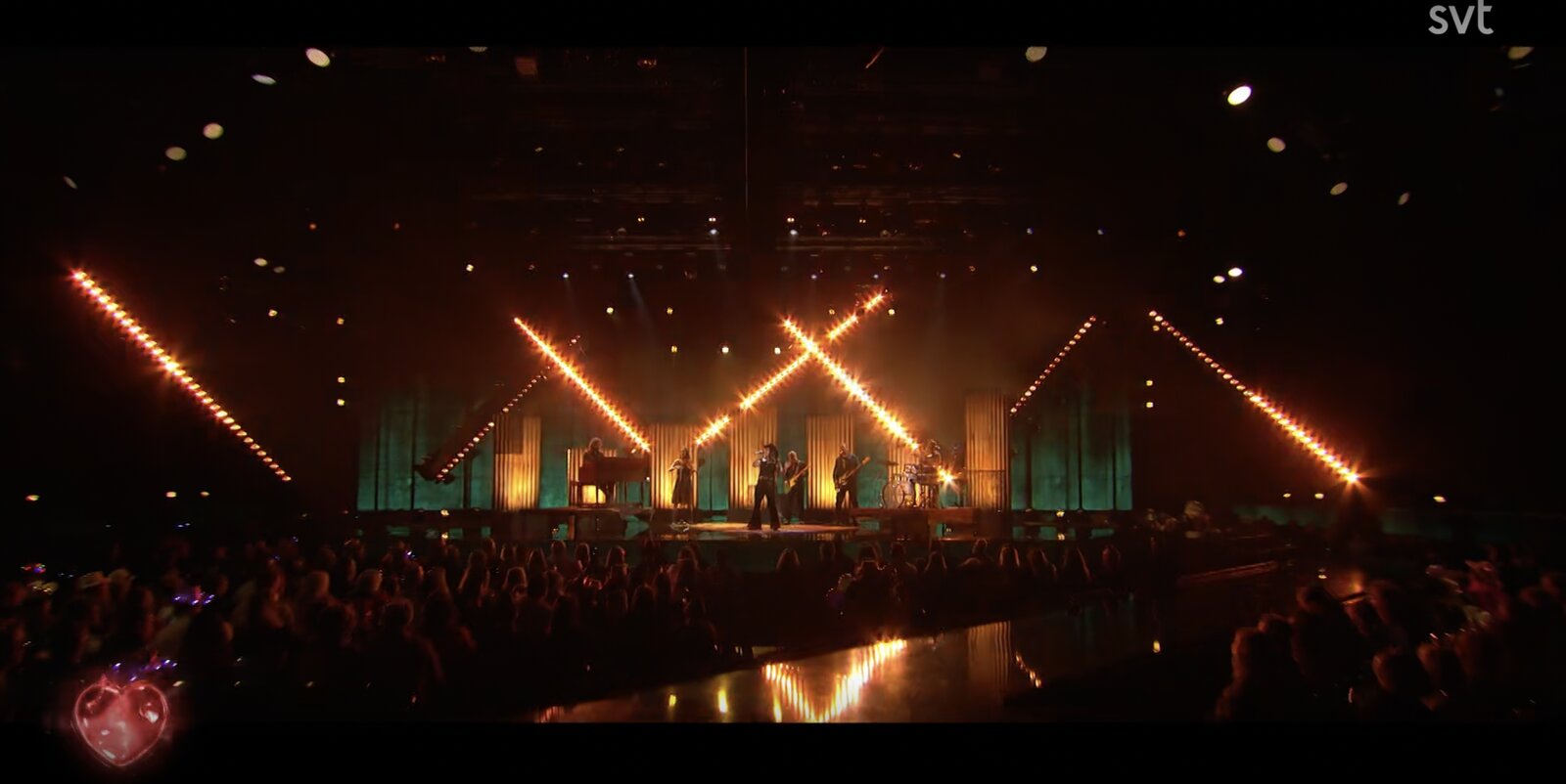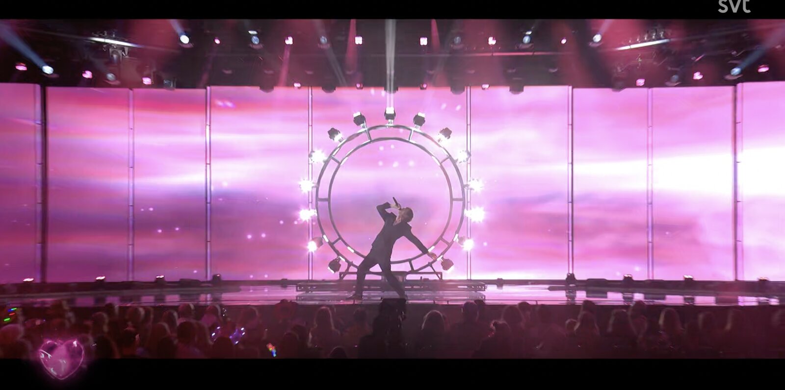 Au cours de la séquence, un technicien surgit et embarque Gina sous le bras, ponctuant la scène d’un « nu kör vi », lançant ainsi officiellement le spectacle.