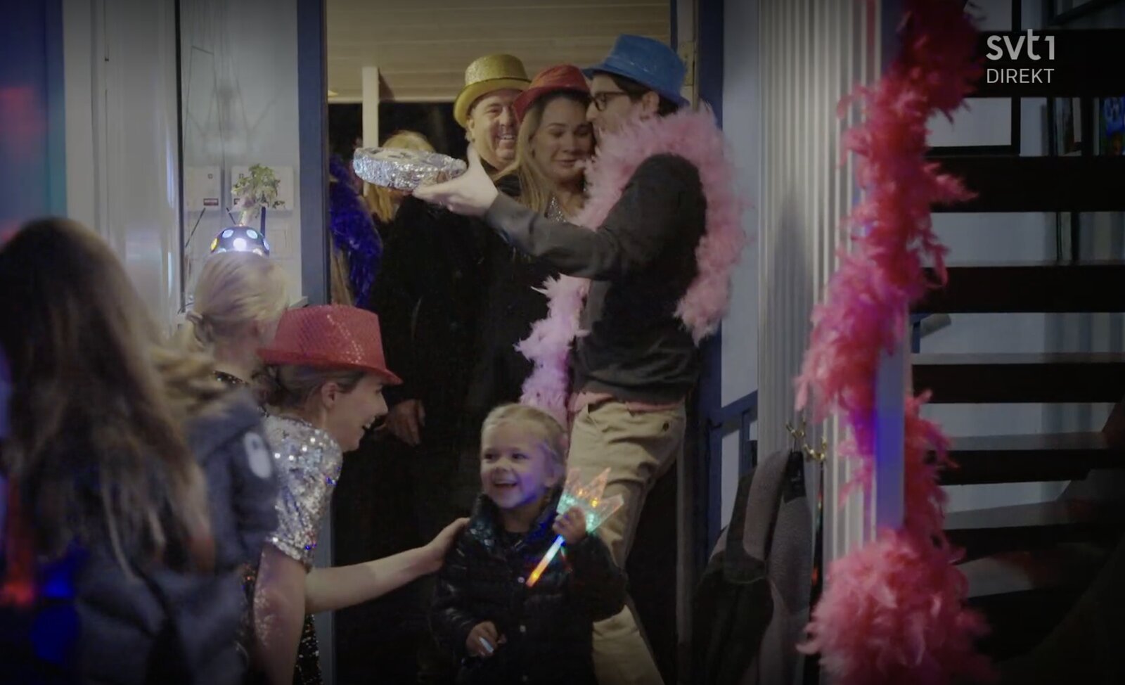 La séquence s’ouvre sur une vidéo montrant un couple, dont le mari est un fan enthousiaste, Lars Johansson, incarné par Hampus Nessvold. La table est dressée, l’appartement décoré avec soin, et des portraits de Carola Häggkvist et Charlotte Perrelli trônent fièrement sur les murs. L’épouse s’active autour de la table, tandis que lui discute tranquillement sur le canapé. Peu à peu, les invités arrivent, et la scène se termine sur une note festive et conviviale.