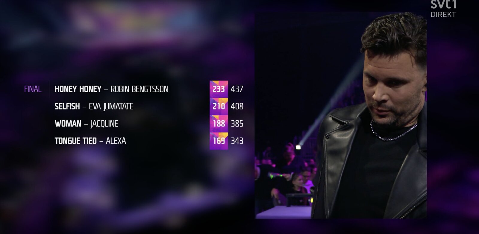 Passant de 233 points à 437 c’est Robin Bengtsson qui est désigné dernier finaliste.