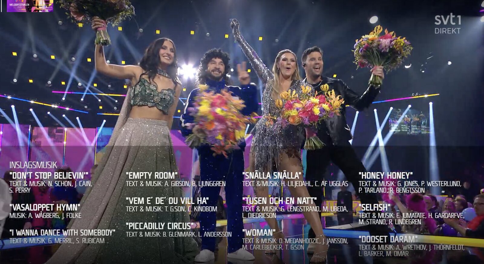 Greczula, A-Teens, Felicia, Brandsta City Släckers, Medina, Saga Ludvigsson, Smash Into Pieces et Cimberly, Lilla Al-Fadji, Sanna Nielsen, Meira Omar… et Robin Bengtsson.