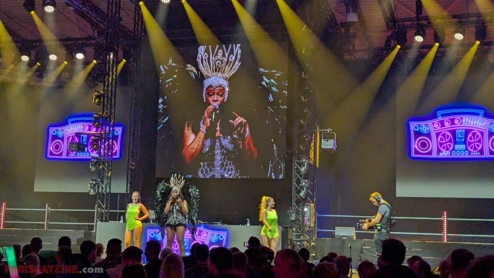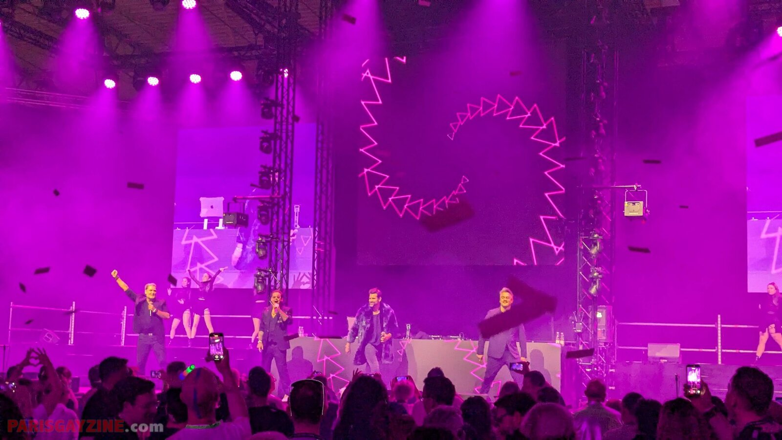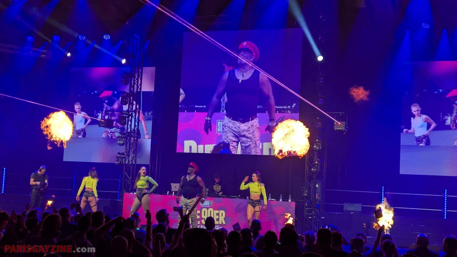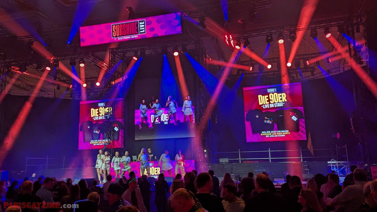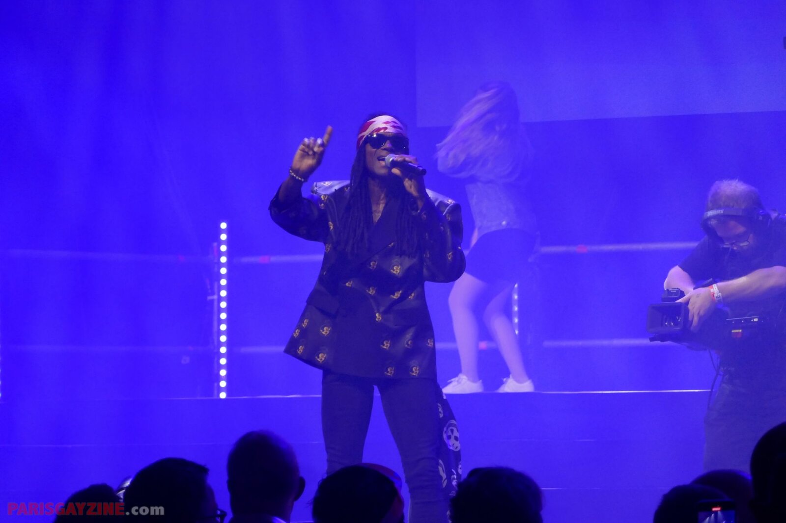 À l’arrière de la scène, quatre danseuses viennent s’ajouter aux deux déjà présentes, accentuant l’énergie visuelle du show.