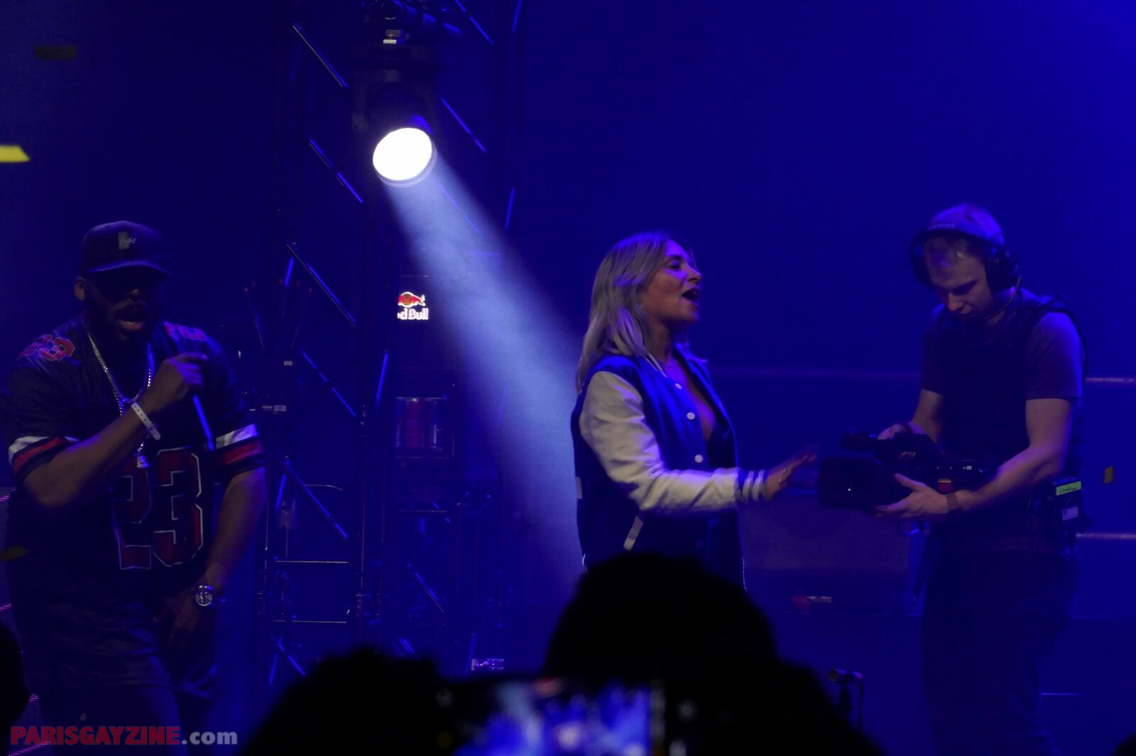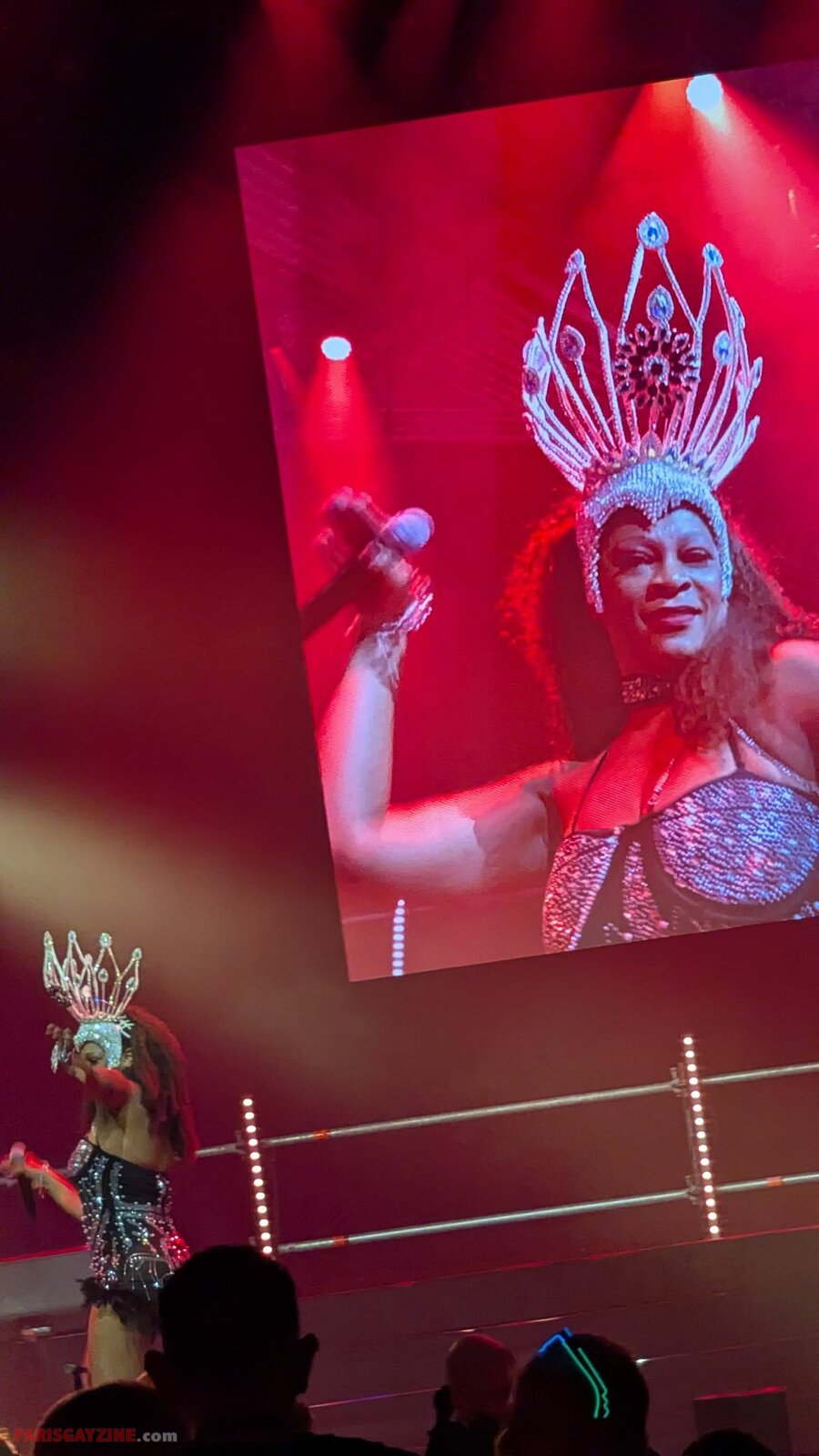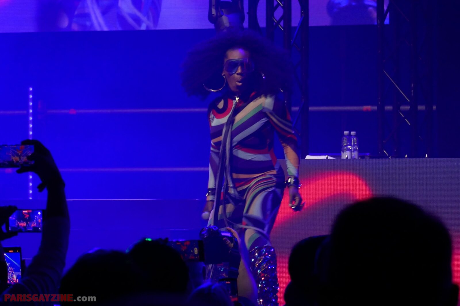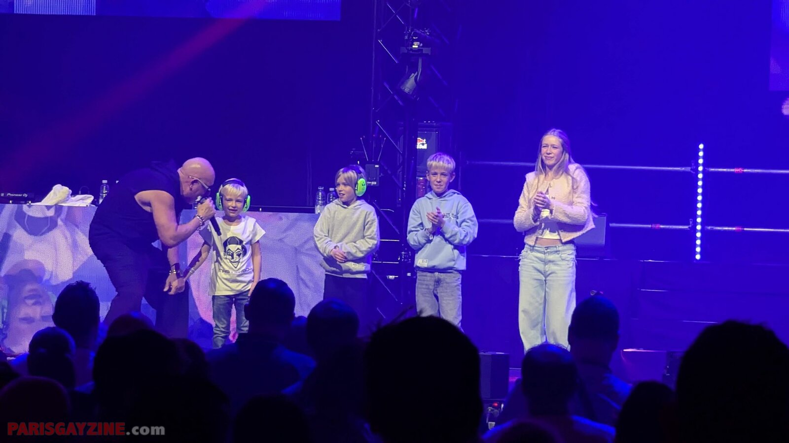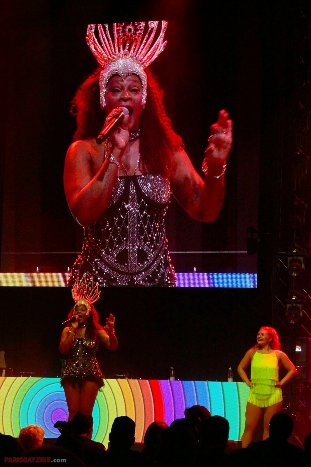 À l’arrière de la scène, quatre danseuses viennent s’ajouter aux deux déjà présentes, accentuant l’énergie visuelle du show.