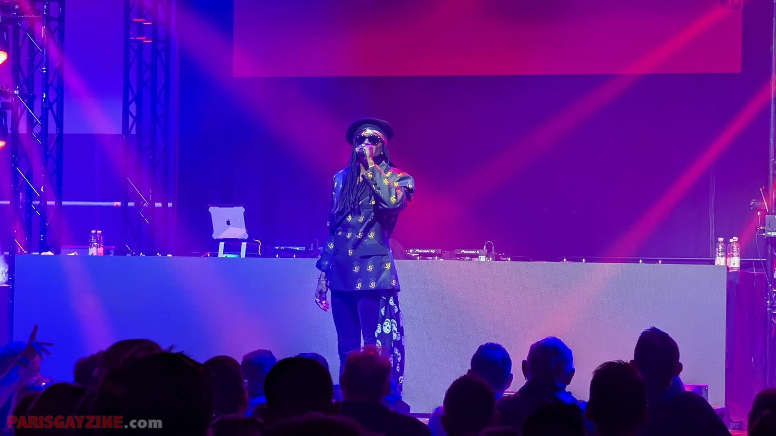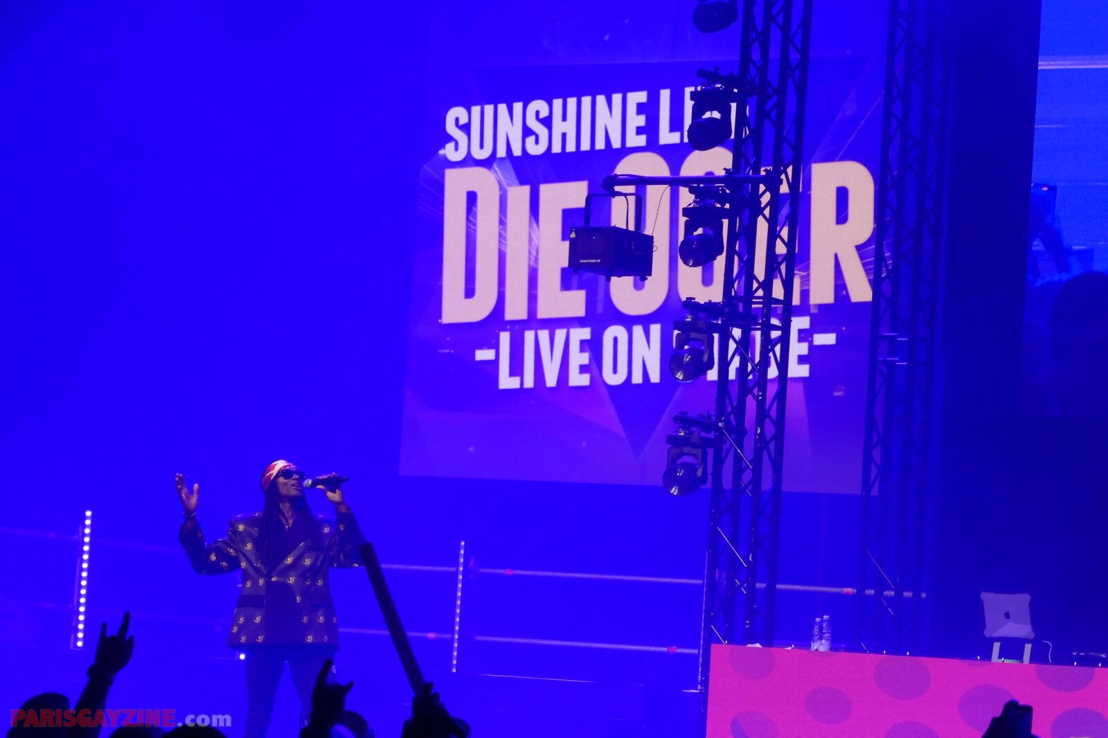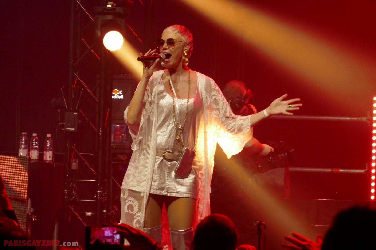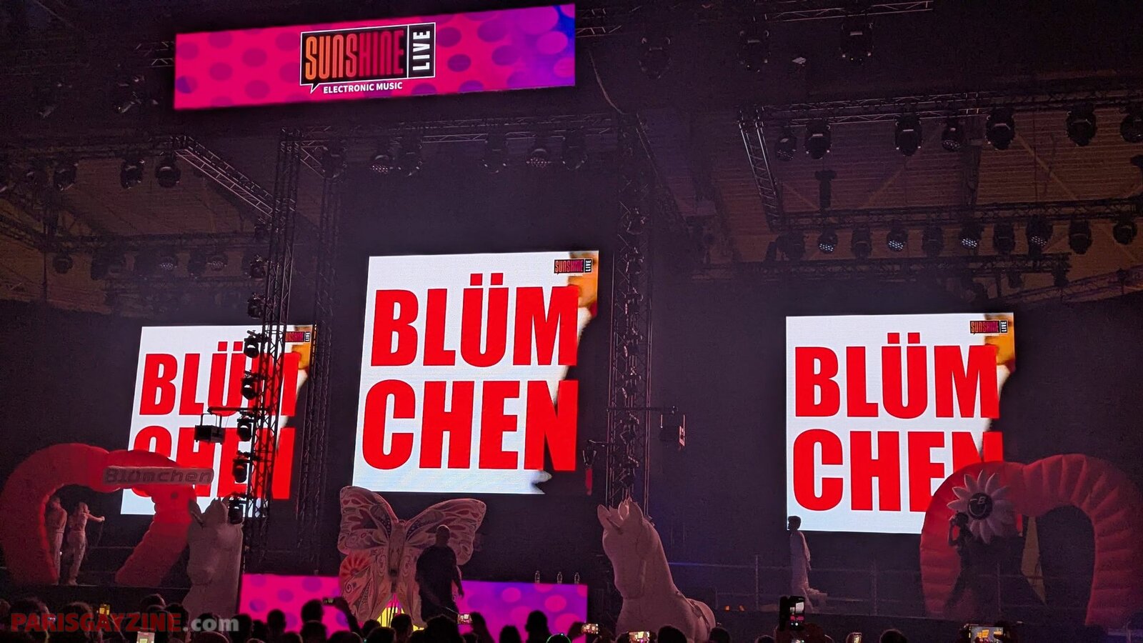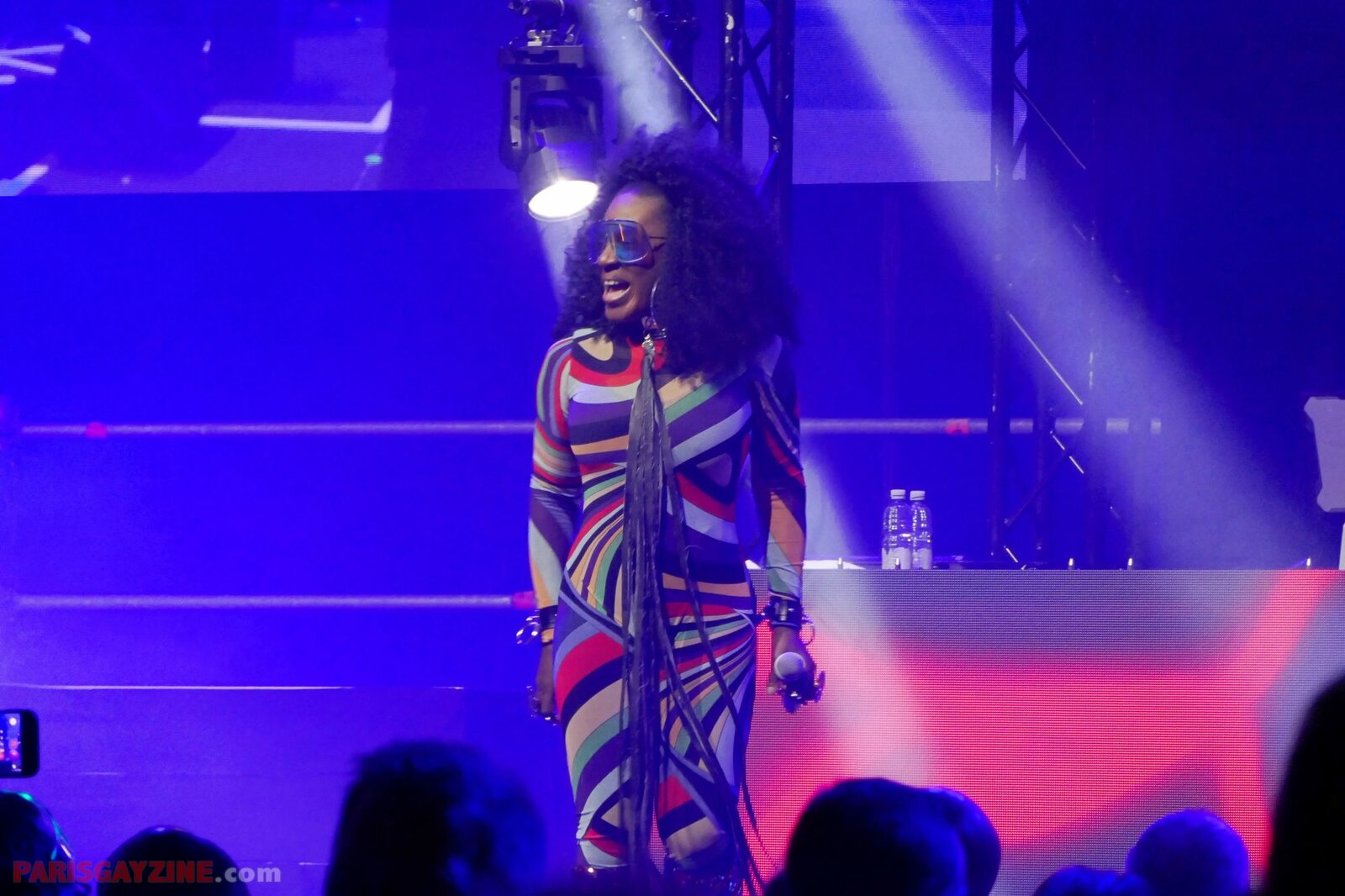 À l’arrière de la scène, quatre danseuses viennent s’ajouter aux deux déjà présentes, accentuant l’énergie visuelle du show.