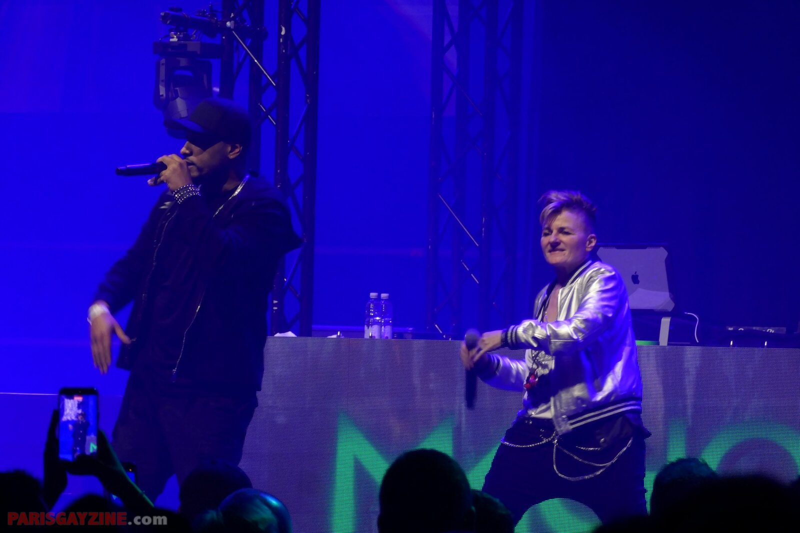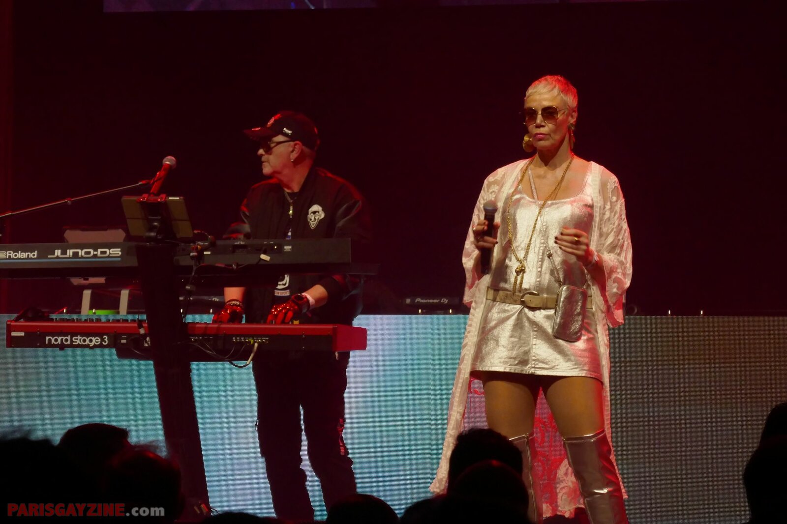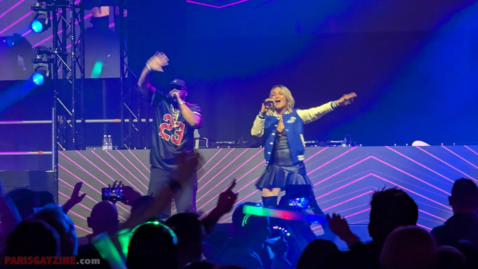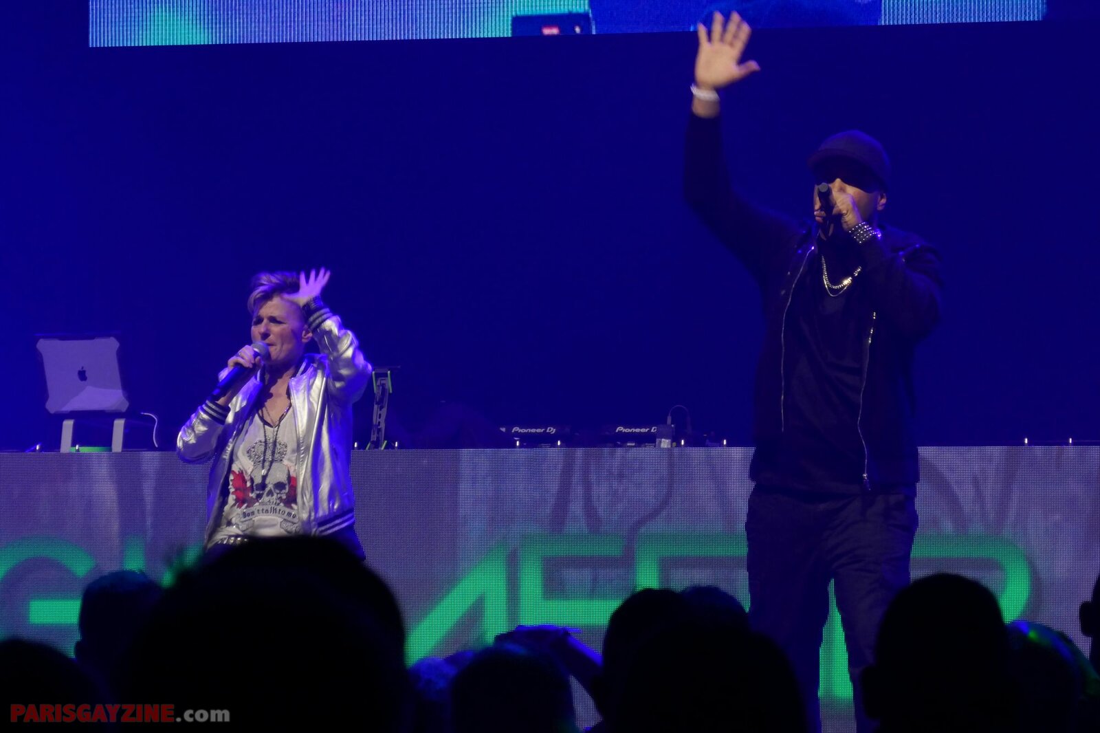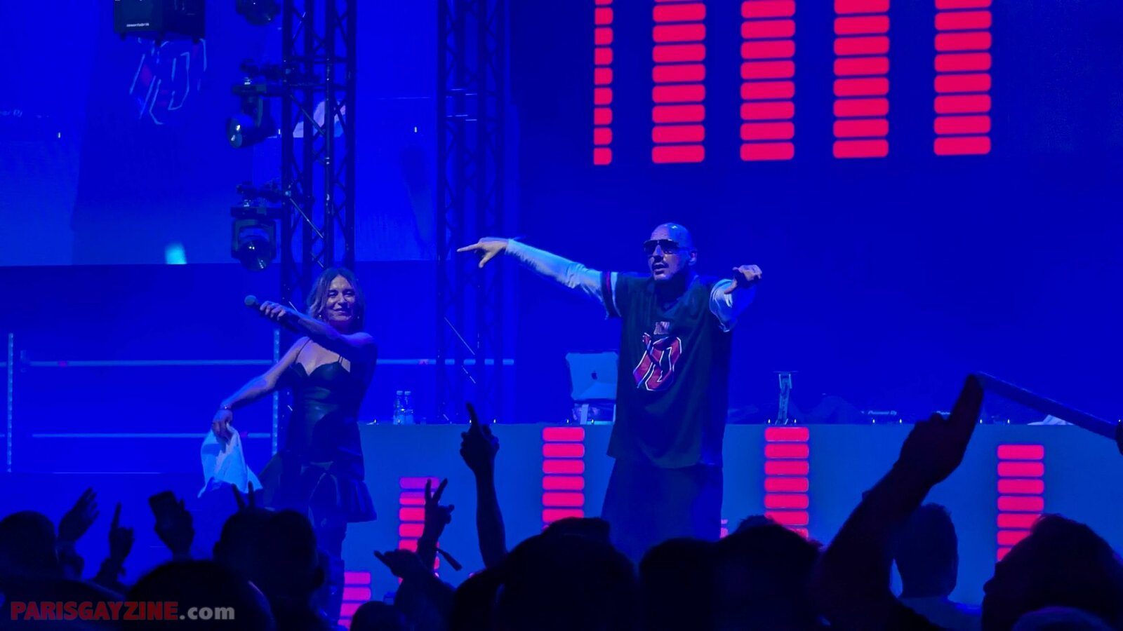 Microphone serti de strass en main, Ilona/Alice DJ se lance dans un flow quasi rappé sur « Satisfaction » de Benny Benassi, et MC Joey fredonne la mélodie mythique de « Kernkraft 400 », immédiatement reconnaissable. L’interaction avec le public est totale, tant MC Joey survolte la foule, laquelle répond en chœur sur le dancefloor.