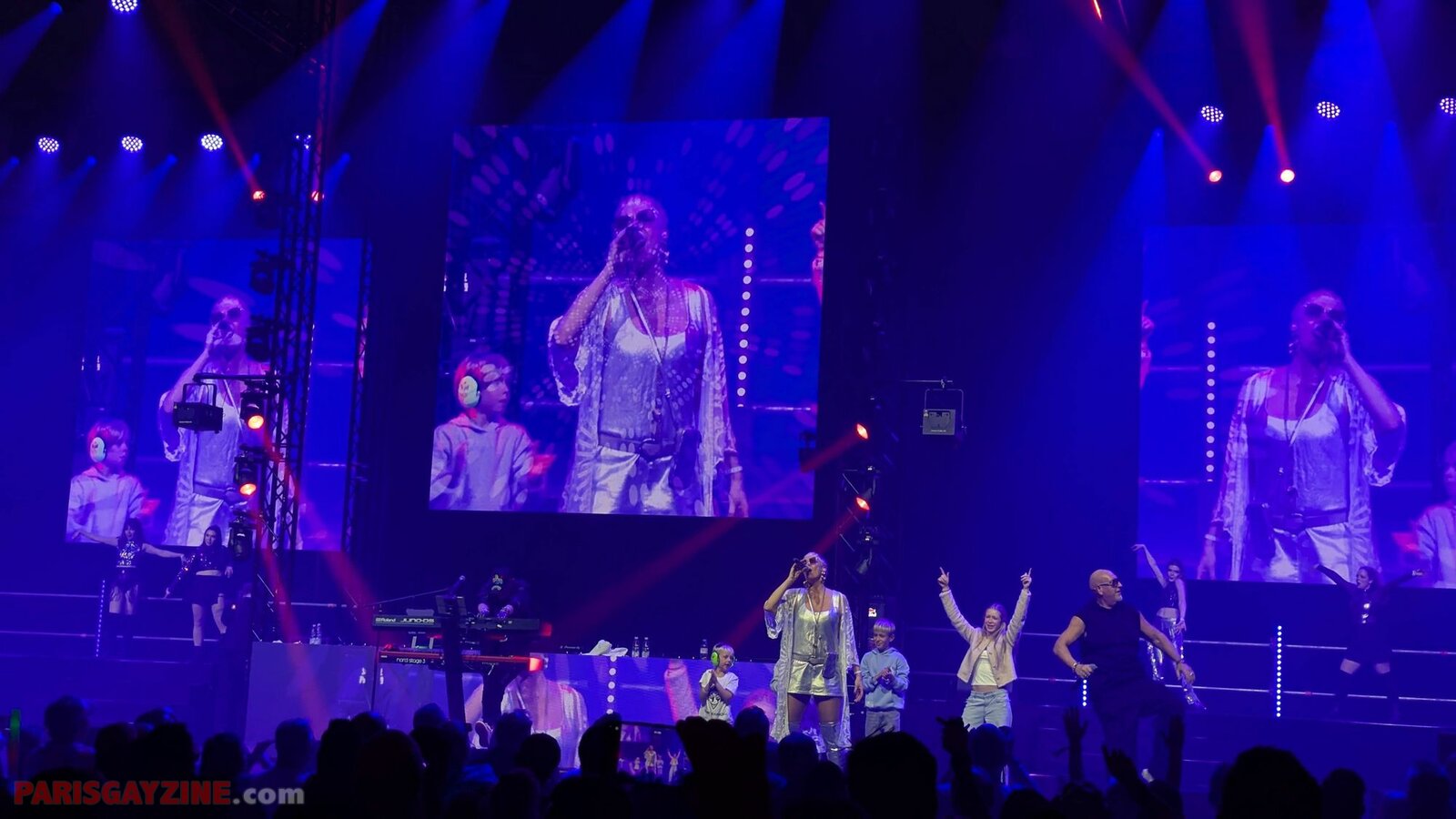 Back in my life démarre, porté par une belle complicité entre les trois artistes, synchronisés dans une chorégraphie entraînante. Sur les écrans, les paroles défilent façon karaoké, invitant le public à chanter à l’unisson et renforçant encore l’interaction avec la salle.