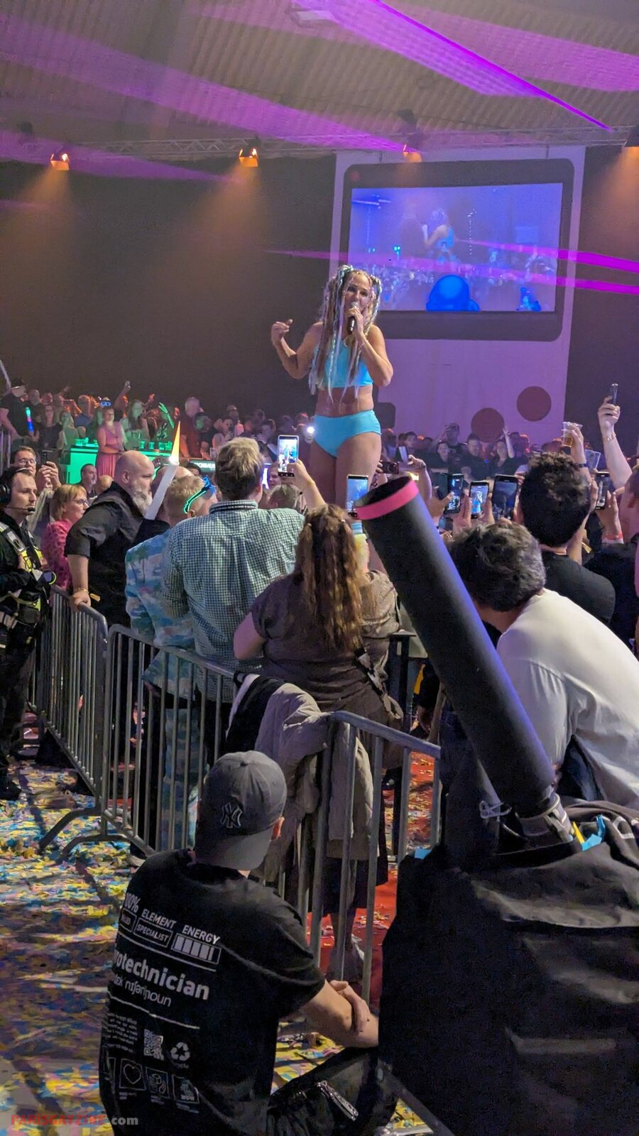 Avouons-le l’ambiance était un peu moins forte avec ce golden VIP (nouveauté 2025 à 299 €) juste devant la scène. Pour les prochaines éditions, nous conseillons à la production de prévoir une avant-scène pour que les artistes viennent plus près du public en fosse. Remonter la scène serait une bonne idée aussi ; celle-ci était un peu basse.