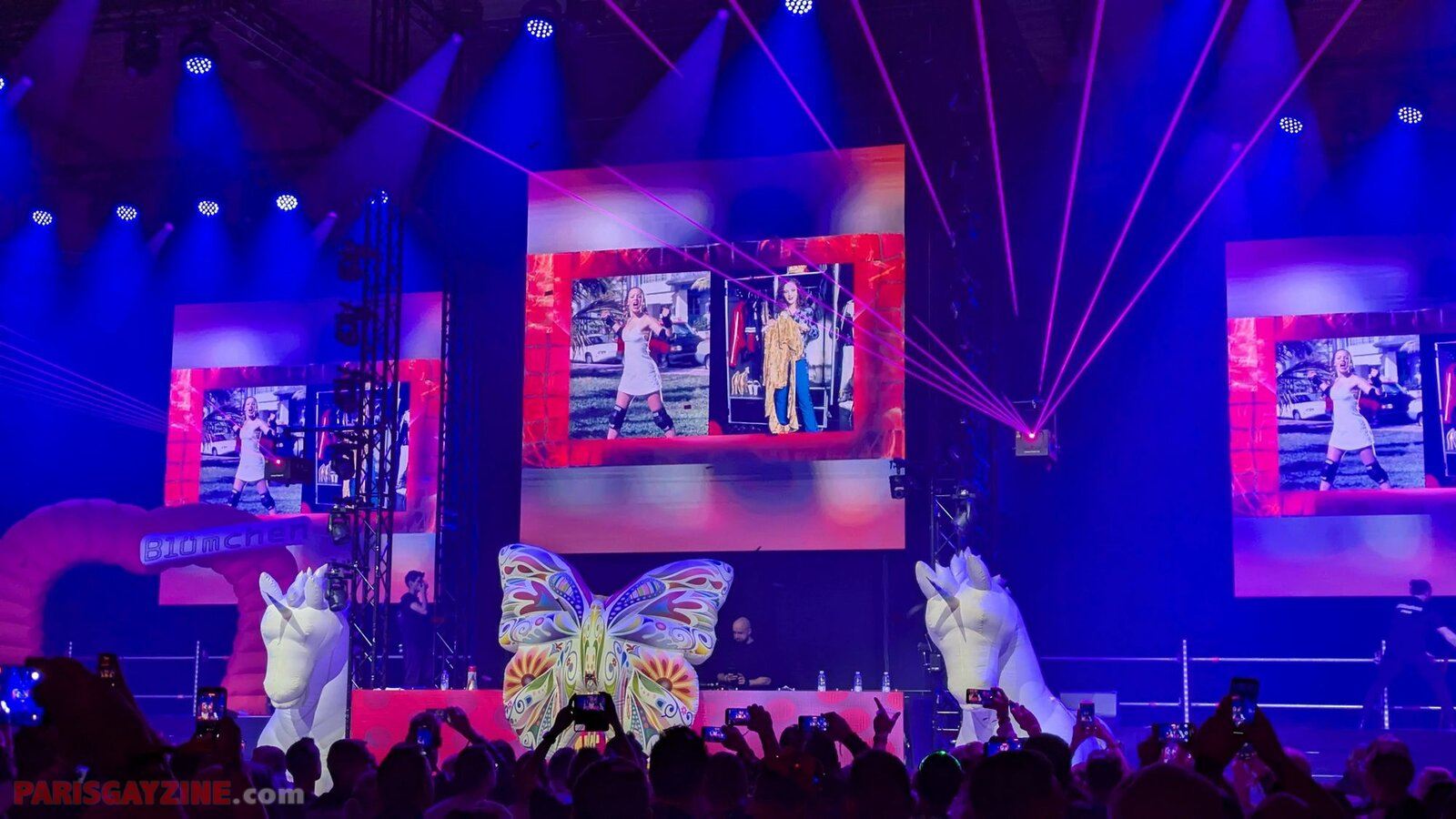 Le show se poursuit au son de l’électro happy hardcore de Mama Maria, enregistré en 2024 avec Pazoo, et reprise du classique de Ricchi e Poveri (1982). L’énergie est portée par un gros son, des flammes, deux danseuses et un visuel rose et bleu évoquant une boule disco façon Confessions on a Dance Floor de Madonna.