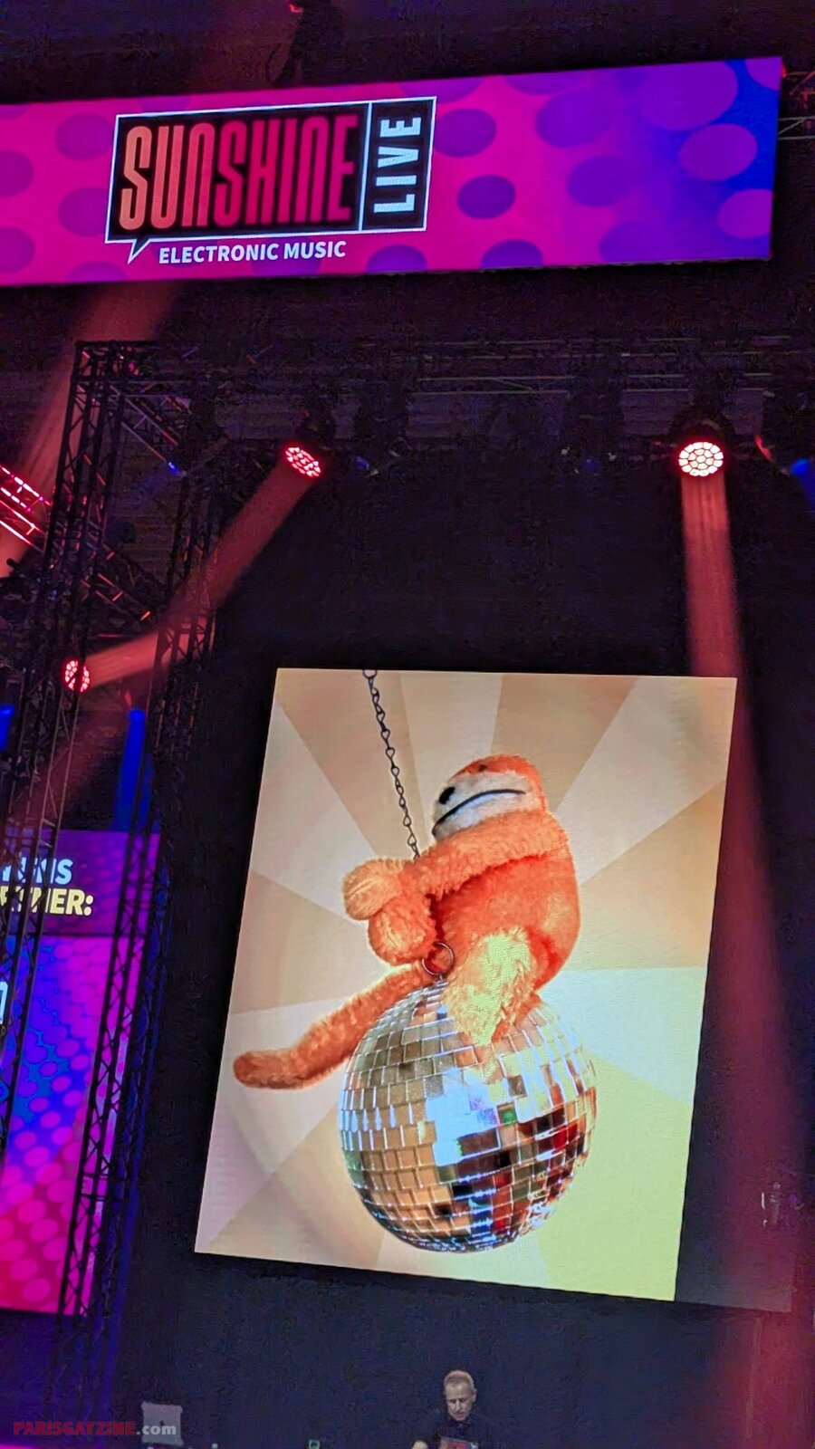 Le public allume les lumières des smartphones sur le fédérateur « L’amours toujours » (1999) de Gigi d’Agostino ; l’italien a droit à un deuxième titre diffusé en peu de temps.