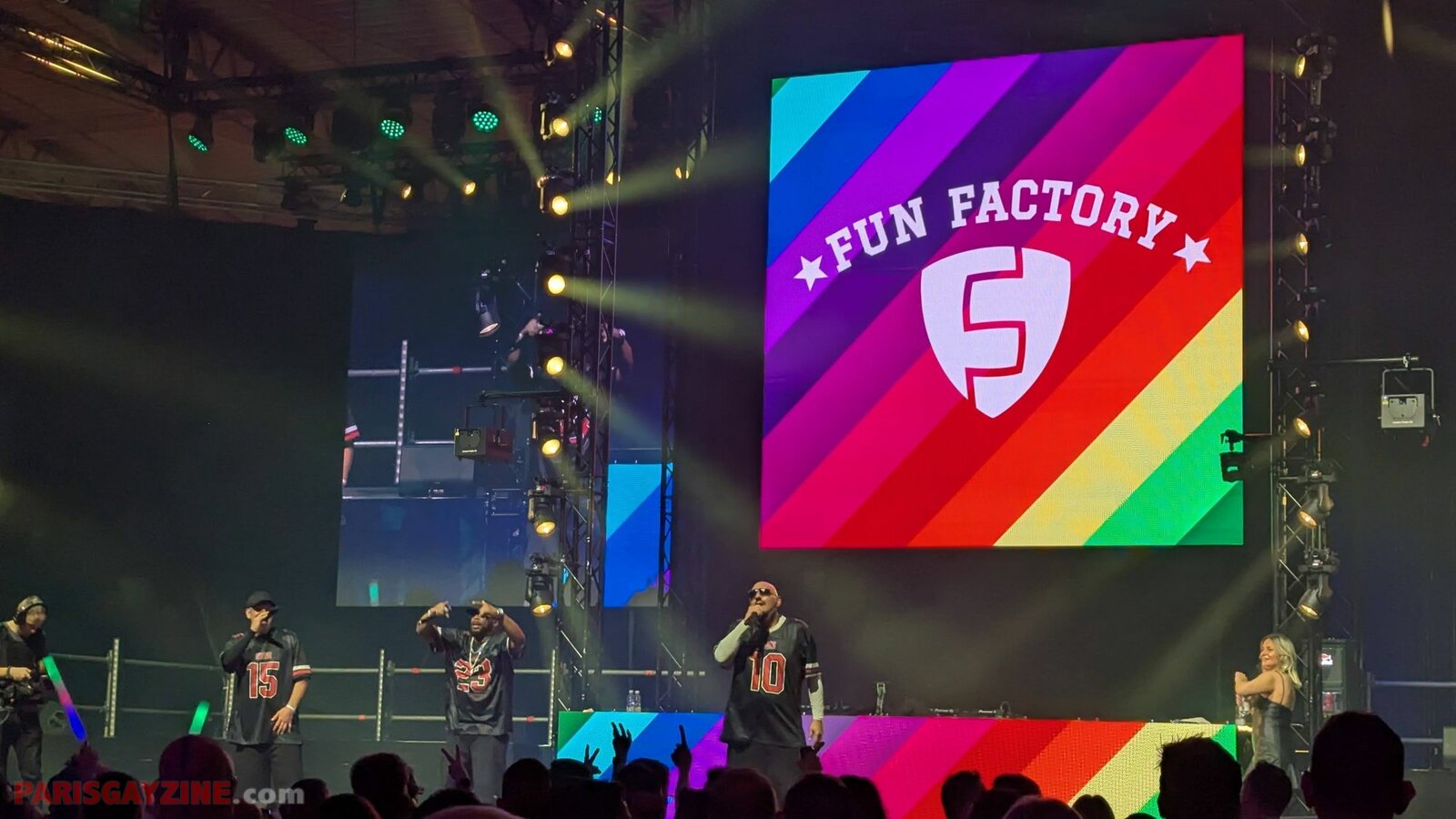 Une voix off lance Are you ready to experience the world of Fun Factory ? S’en suit une séquence mêlant plusieurs airs connus, de registres différents, tels que l’urbain « Low » de Flo Rida, les 80s pour le « Sweet dreams » d’Eurythmics, The next episode de Dr Dré (tout le monde les bras en l’air !), « Sweat (A la la la la long) » d’Inner Circle (que Bellini venait de reprendre !), puis « YMCA » des Village People… peu inspiré de nos jours vu l’actualité américaine !