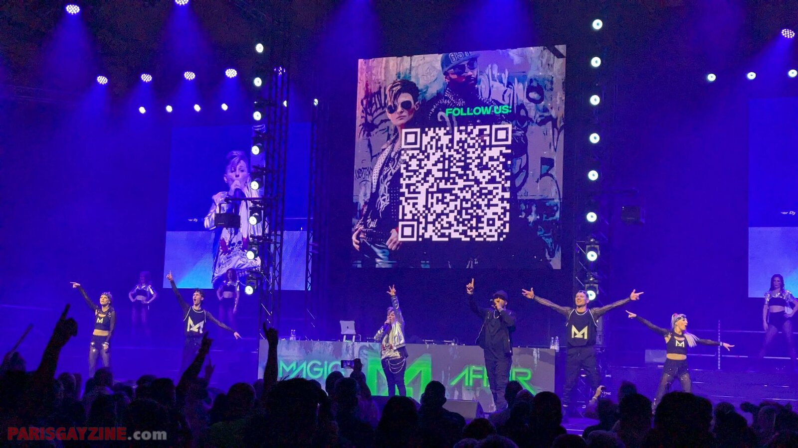 Pour ceux qui auraient oublié le nom du groupe, il s’affiche sur une photo avec un omniprésent QR code appelant à suivre ce dance-act sur les réseaux sociaux.
