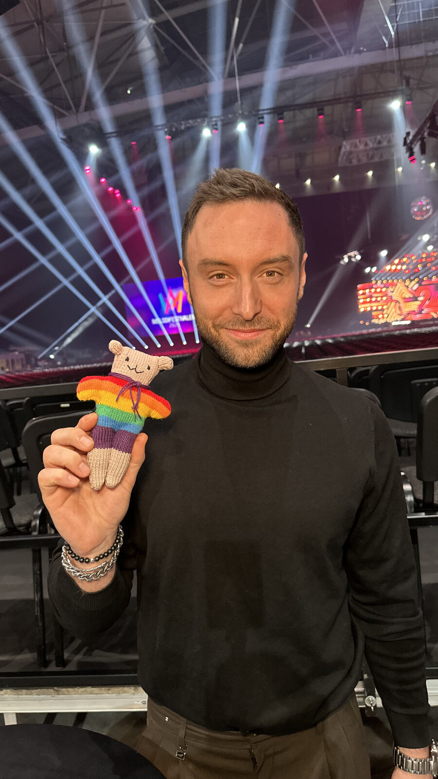 Comme chaque année, Rainbow Bear poursuit sa mission : répandre des good vibes, du love et une touche de magie arc-en-ciel dans les coulisses du Melodifestivalen. Entre deux interviews, les artistes se prêtent au jeu avec le sourire — une photo, un câlin fluffy, et hop, l’énergie change.
