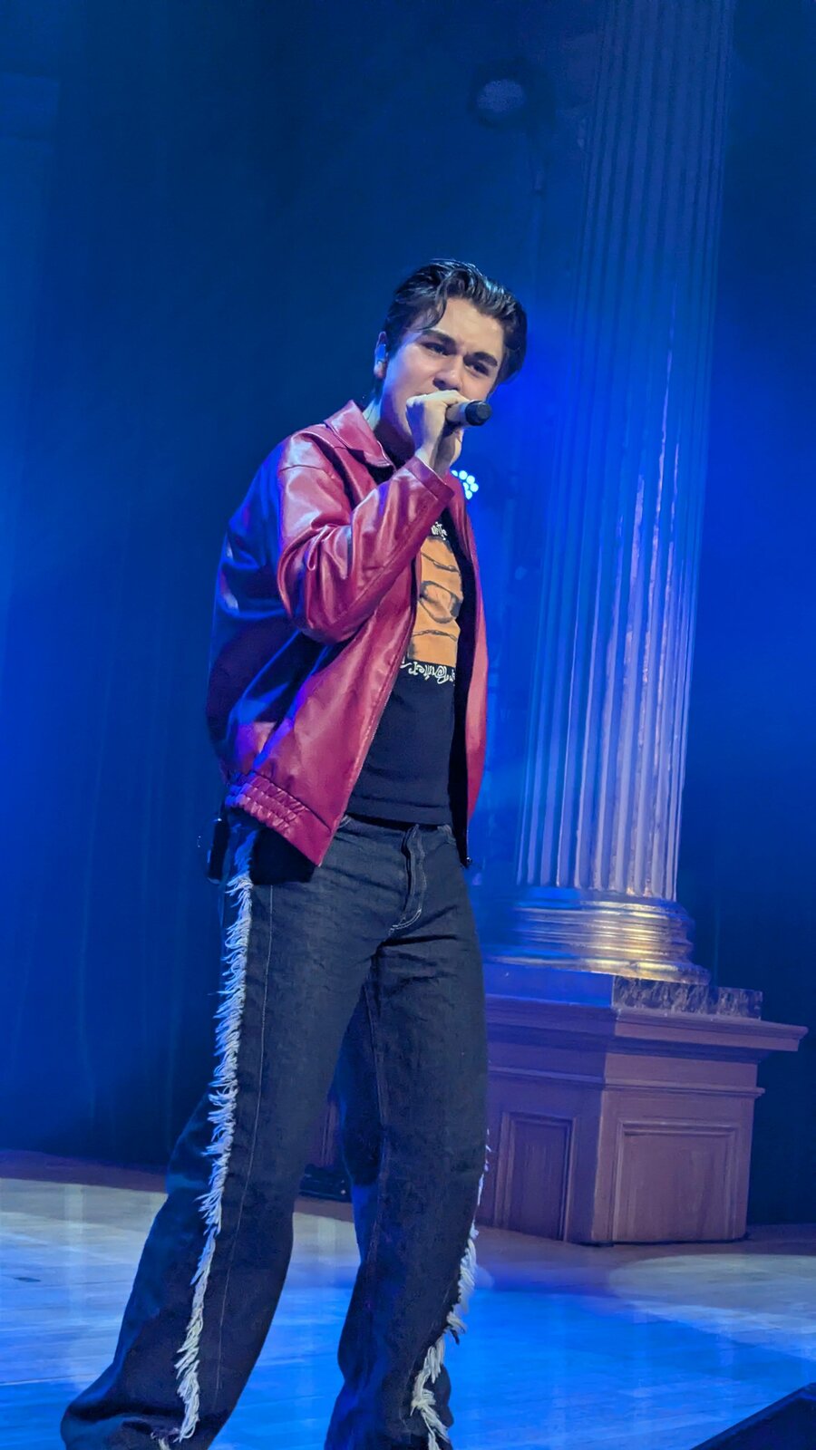 Le plateau d’artistes s’ouvre avec Arwin, accompagné de deux guitaristes. Il interprète "This Dream of Mine" (Mello 2025) et "Glitter" (Mello 2026). Il a du succès auprès des jeunes mais n’a jamais été finaliste du Melodifestivalen. Agé de 18 ans seulement, il est aussi acteur de séries.