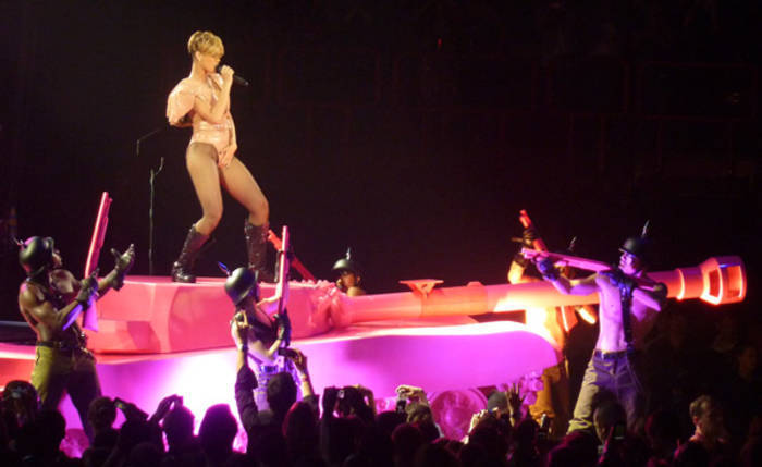 Un montage de ses différents clips est ensuite projeté sur la musique de Pon de replay, le hit qui la révélée en 2005. Des vocaux "Hey mister dj" ont été ajoutés ainsi que les "Mama say Mamakossa" de Michael Jackson.
