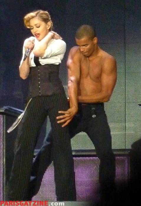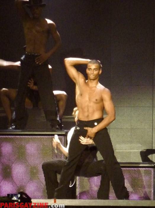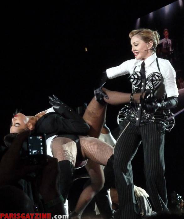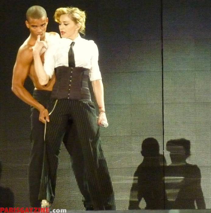 A notre grande surprise ensuite, Madonna revient à son dernier album "Hard Candy" en chantant Candy shop sur lequel elle lâche un petit "Oh la la" qui fait plaisir à son public français. L’atmosphère est plus moite, très jazzy-lounge. Des extraits d'"Erotica" sont ajoutés dans cette version. A juste titre d’ailleurs, car ce qui est donné à voir sur scène est vraiment très proche de cet album. Les couples dénudés se forment, et en particulier celui du duo Ciccone-Zaibat. "Express yourself, don’t repress yourself..." Le jeu de miroir est saisissant sur Human nature, morceau extrait du "Bedtime stories" (1994). Madonna montre alors ses talents de danseuse à l’ancienne, c’est minimaliste mais très réussi !