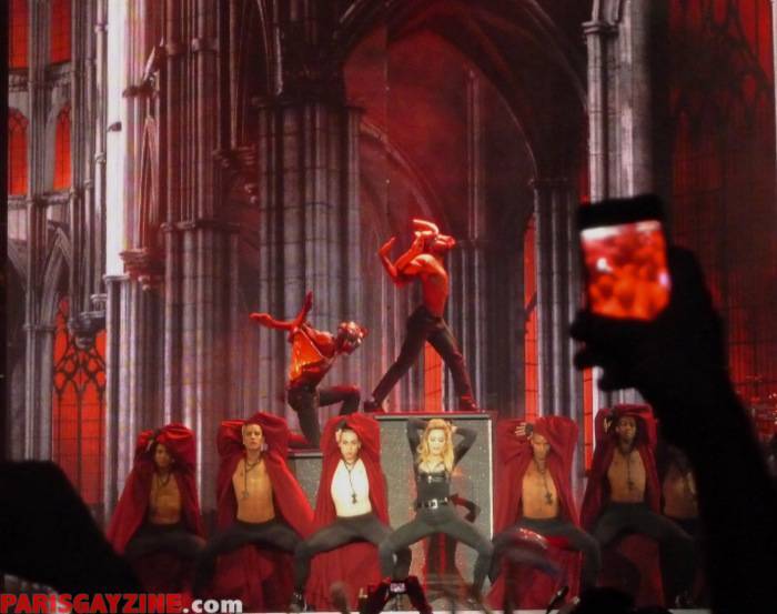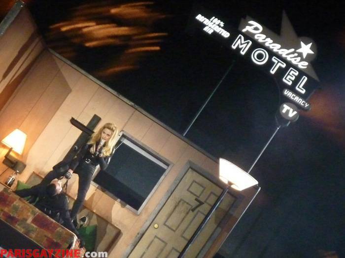 La scène se termine devant nous après que Madonna ai empruntée le catwalk qui nous sépare du golden triangle, lieux où sont présents quelques fans triés sur le volet ainsi que Jean-Paul Gaultier, Florence Foresti et Dita von Teese.