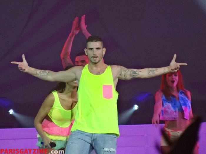 Ils jouent une demi-heure et les lumières se rallument dans le Palais Omnisport. Le public se tourne vers Pascal Obispo, Tal, Emmanuel Moire et plusieurs danseurs qui prennent place dans l’espace VIP, avant l’arrivée du producteur de Shy M, K.Maro accompagné de son amie.