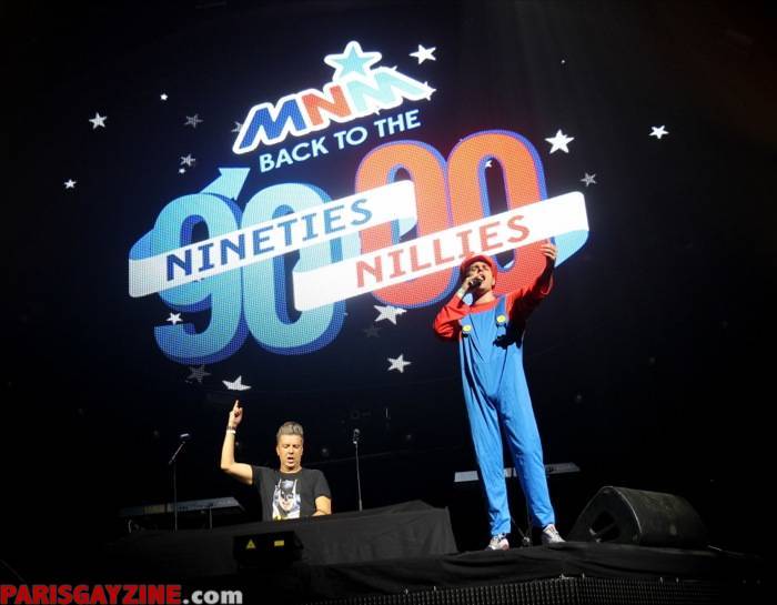 23h30. L’animateur Peter van de Veire débarque en tenue de Mario Bros sur le générique de ce célèbre jeu vidéo. Sur l’écran géant s’affiche la nouvelle page Facebook de la soirée… qui devient Back to the Nineties & Nillies. Les organisateurs ont décidé de revoir un peu le concept en y ajoutant une décennie. Au passage, nous découvrons ce terme qui désigne les années entre 2000 et 2009.
