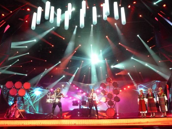 La réponse est probablement oui car elle est bien défendue par ce joli duo qui termine ensemble sa prestation sous une pluie d'étincelles. Cela nous rappelle donc fortement la victoire de l'Azerbaidjan en 2011.