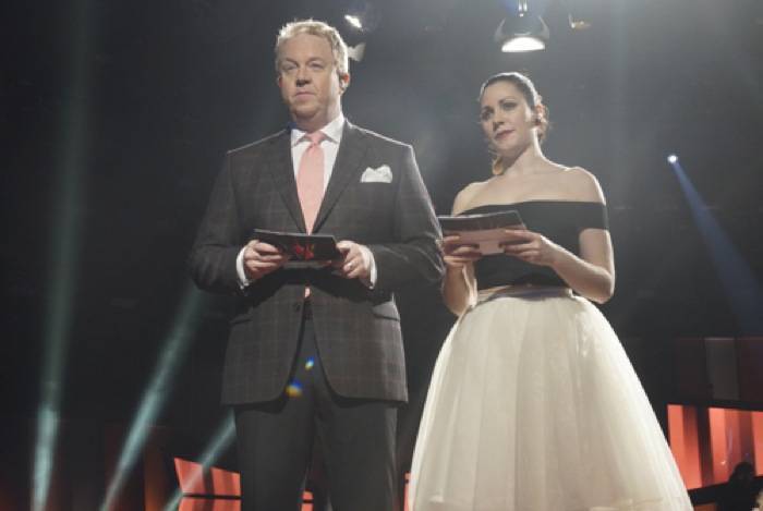 Nous revoyons les 5 extraits et retrouvons les animateurs sur la scène pour une nouvelle séquence comique dans laquelle une assistante sexy apporte un verre d’eau à Nour sous le regard dégoulinant d’envie d’Anders. Après la chronique de Clara Henry, Anders se plaint d’avoir un assistant (qui lui apporte une banane !) plutôt que la jolie femme de tout à l’heure.