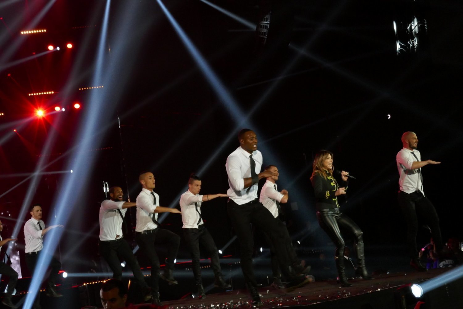 Pauline Esther entre sur scène pour "Oui je l’adore". La rousse est entourée de ses girls, matées par une troupe de jeunes aviateurs !