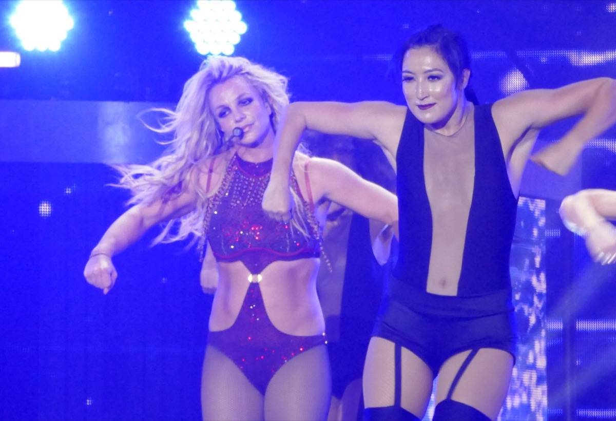 Britney se démène à gauche, à droite, sur le catwalk, sur la scène, dans l’escalier… Elle multiplie les allers-retours vers l'arrière de la scène et se recoiffe en permanence. On ne peut que constater son dynamisme, même si ses mouvements sont mécaniques et manquent de souplesse et de grâce.