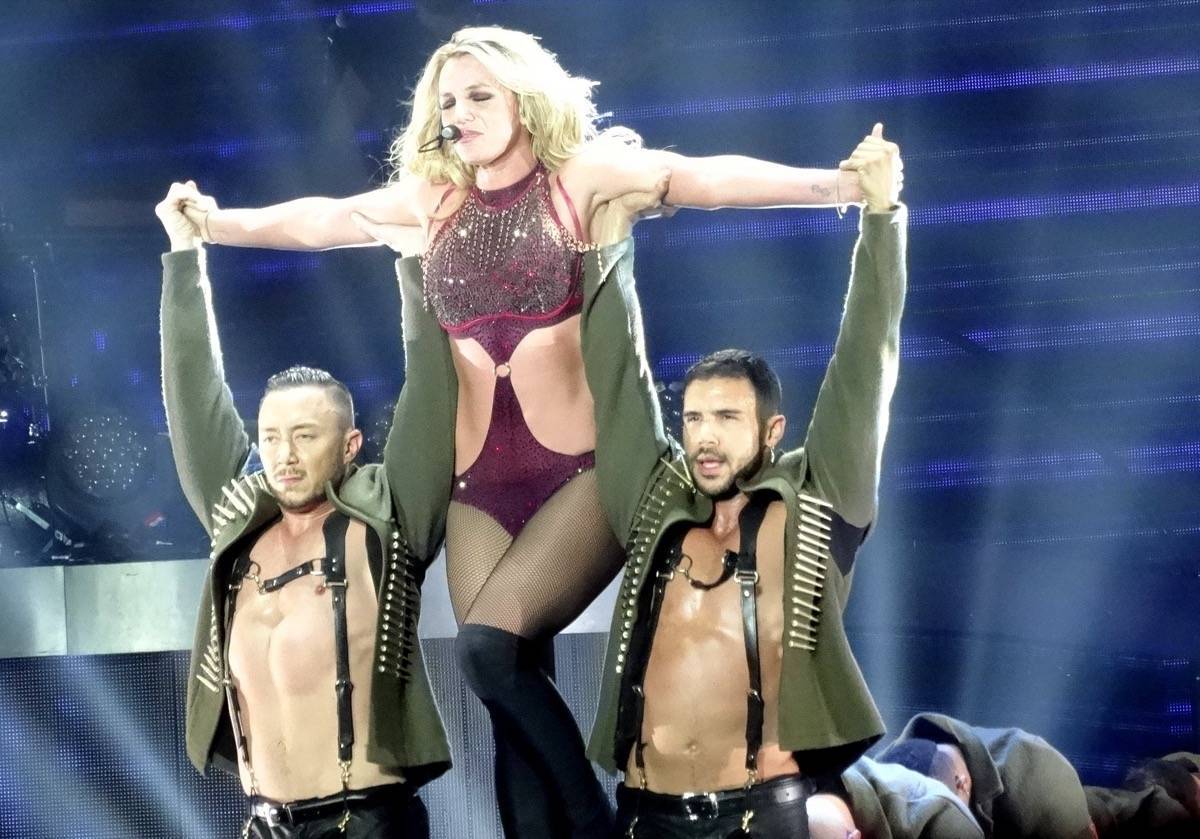 Au lieu d'une personne du public qui vient danser avec elle, comme il nous est fait croire, c'est Adrien Galo, son danseur sur "Femme Fatale" (et qui apparaît dans le clip de "I wanna go") qui monte ce soir sur scène sur "Freakshow". Le jeune homme est tenu en laisse par les danseurs sur la scène principale, puis rampe jusqu'à l'avant-scène. Portant un harnais sur un t-shirt blanc, il effectue des mouvements de danse avec un professionnalisme qui, après-coup, s'explique facilement. Give it up for Adrien ! dit-elle après leur accolade.