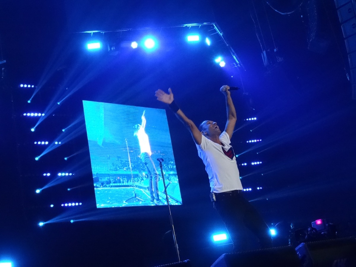 Le public est debout dans les gradins. Les espagnols réservent un bel accueil à Haddaway.