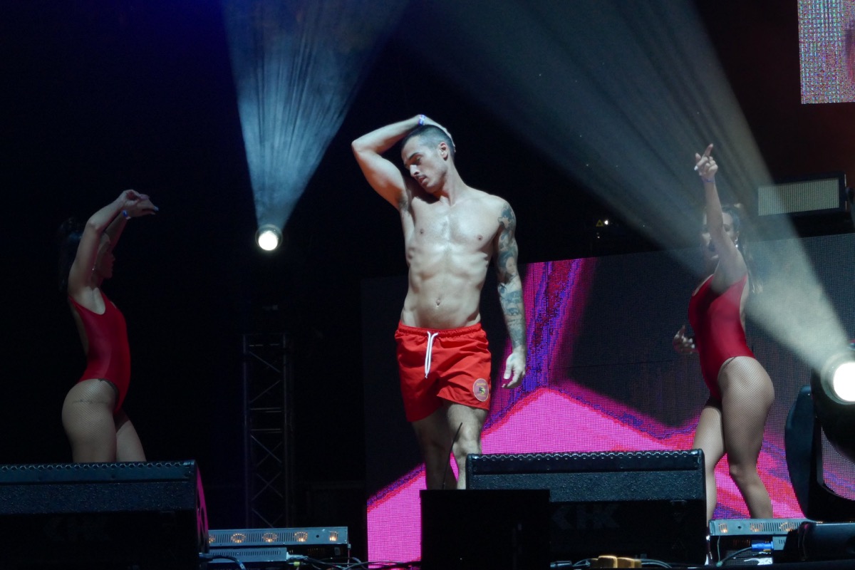 Le rappeur a une vraie présence sur scène. Il nous interprète un medley de ses succès au cours d’une prestation pleine d’énergie.